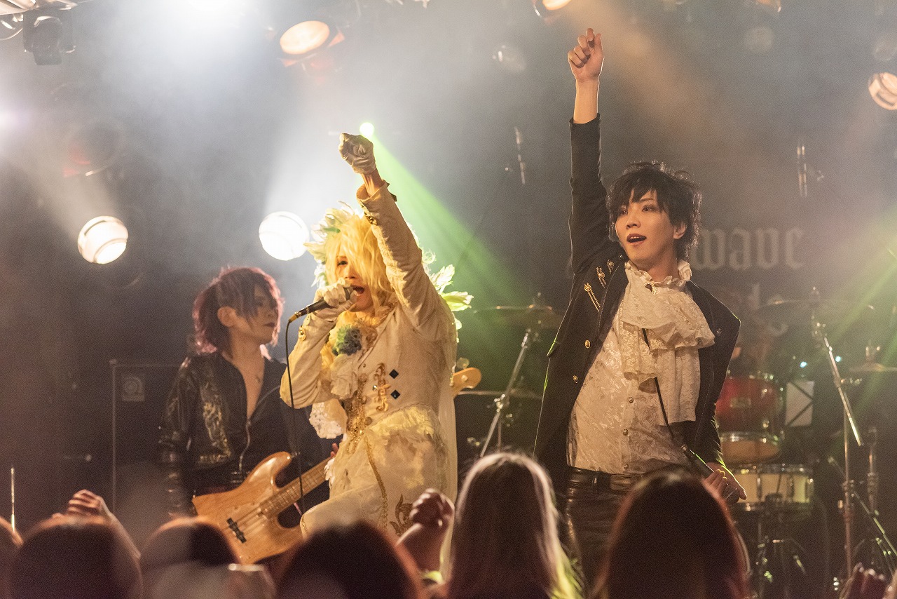 騒ぐ気持ちに熱狂という衝動を加えようと、EleventhはFIXERのカバー曲「孤慟-into the vortex-」をぶつけてきた。重く激しい演奏が炸裂。フロア中からも拳が突き上がれば、激しく頭を振り乱す様もフロア中に広がりだした。攻めに徹した楽曲の上で、Kakeruがグロウルすれば、メロウな歌を有栖川塁とKakeruがハモり続ける。2人のヴォーカリストの阿吽の呼吸は、長年共にStarwave Recordsへ所属し、数多くのライブを共にしてきたからこそ。セッションバンドとはいえ、メンバー全員が歴代のStarwave Records所属バンドのメンバーや親交の深い関係。だからこそ、質の高い演奏を通し、観ている人たちの気持ちを熱く騒がせていった。最初から最後までクライマックスなライブだったのも嬉しいじゃない。