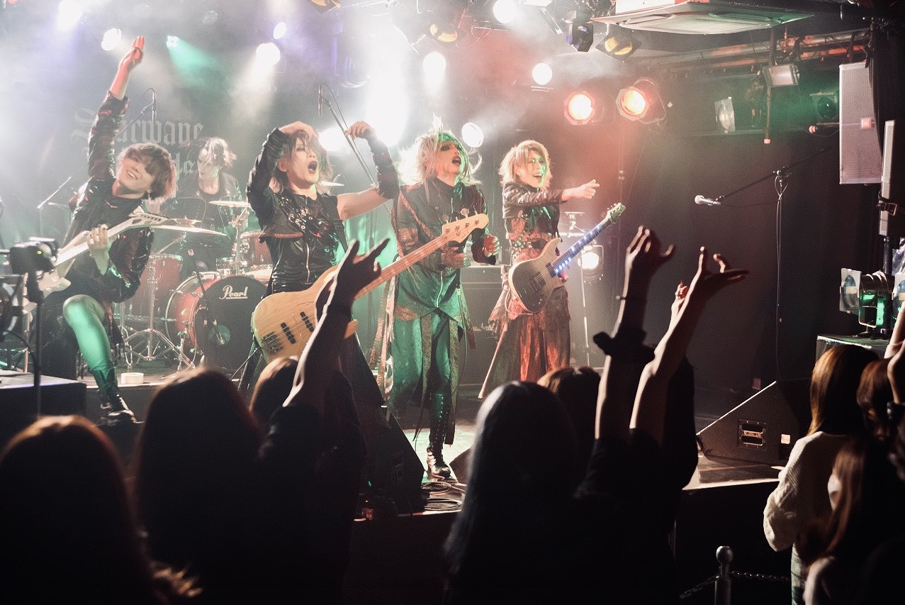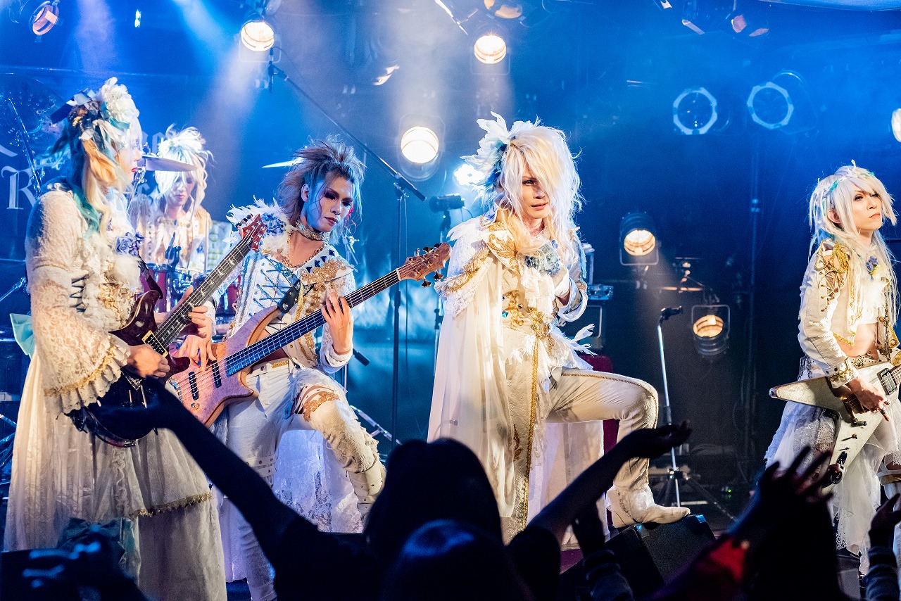 イベントのトリを飾ったのが、Scarlet Valse。同イベントのトリを担うということは、レーベルとしても、今年とくに力を注ごうという姿勢の現れだ。ライブは、胸を熱く騒がせるサビ歌が印象的なハード&ドラマチックナンバー「Metamorphosis」から始まった。ヴォーカルKakeruの煽りに触発され拳を振り上げ、その場で大きく飛び跳ねる満員の観客たち。とても雄々しい楽曲なのに、魂を熱く揺らす切なくてメロウな歌に心が騒ぎ続けていた。