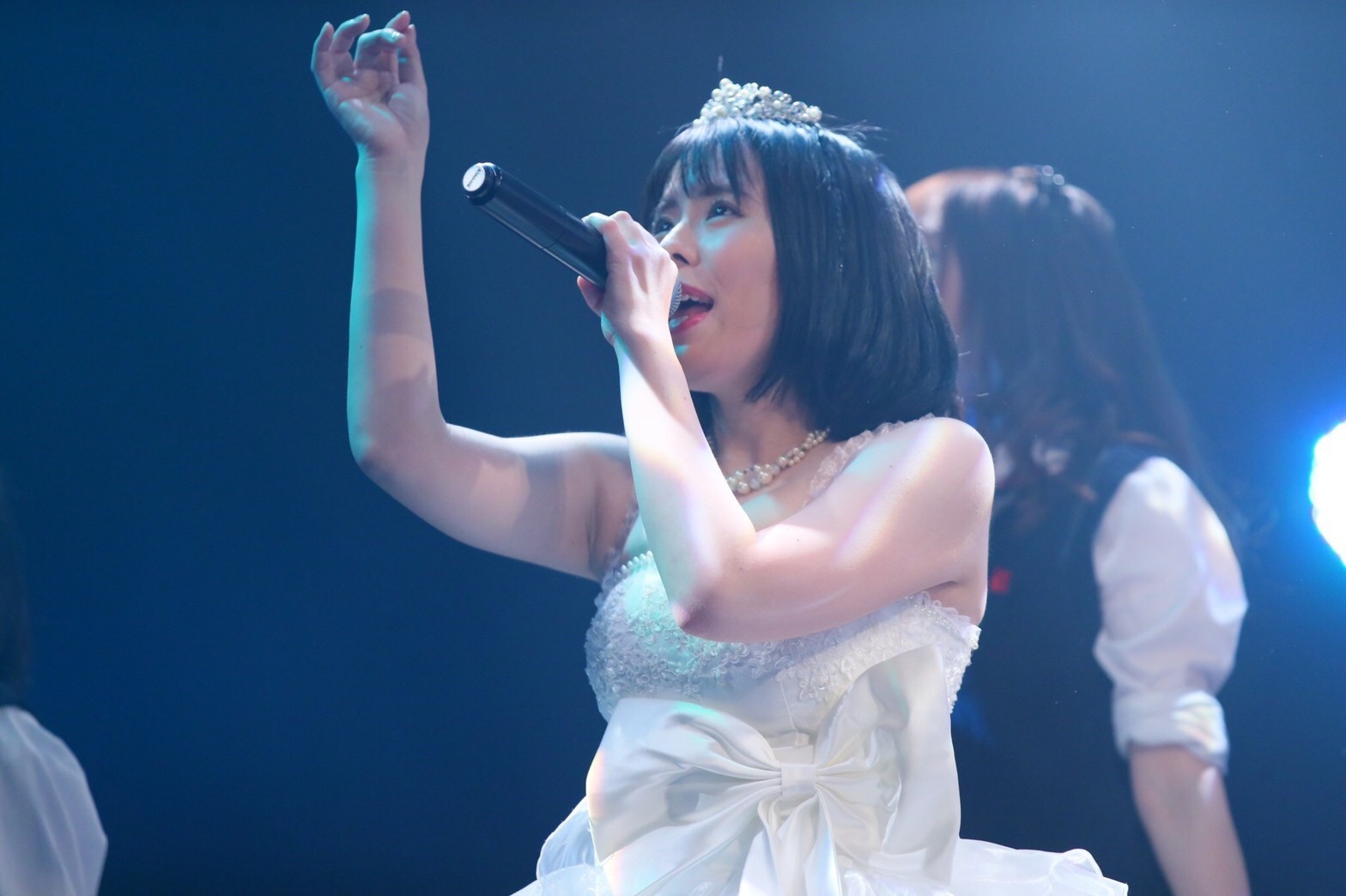 次に飛びだしたのが、熱情した想いを力強い楽曲に乗せ凛々しく歌う「again」。テンポの速い曲に乗せ、彼女たちは情熱的な歌声を魅力に、観ている人たちの心を熱く騒がせる。笑顔のメンバーたちも魅力だが、凛々しい表情で歌う彼女たちの姿にも心は強く引き寄せられていた。
