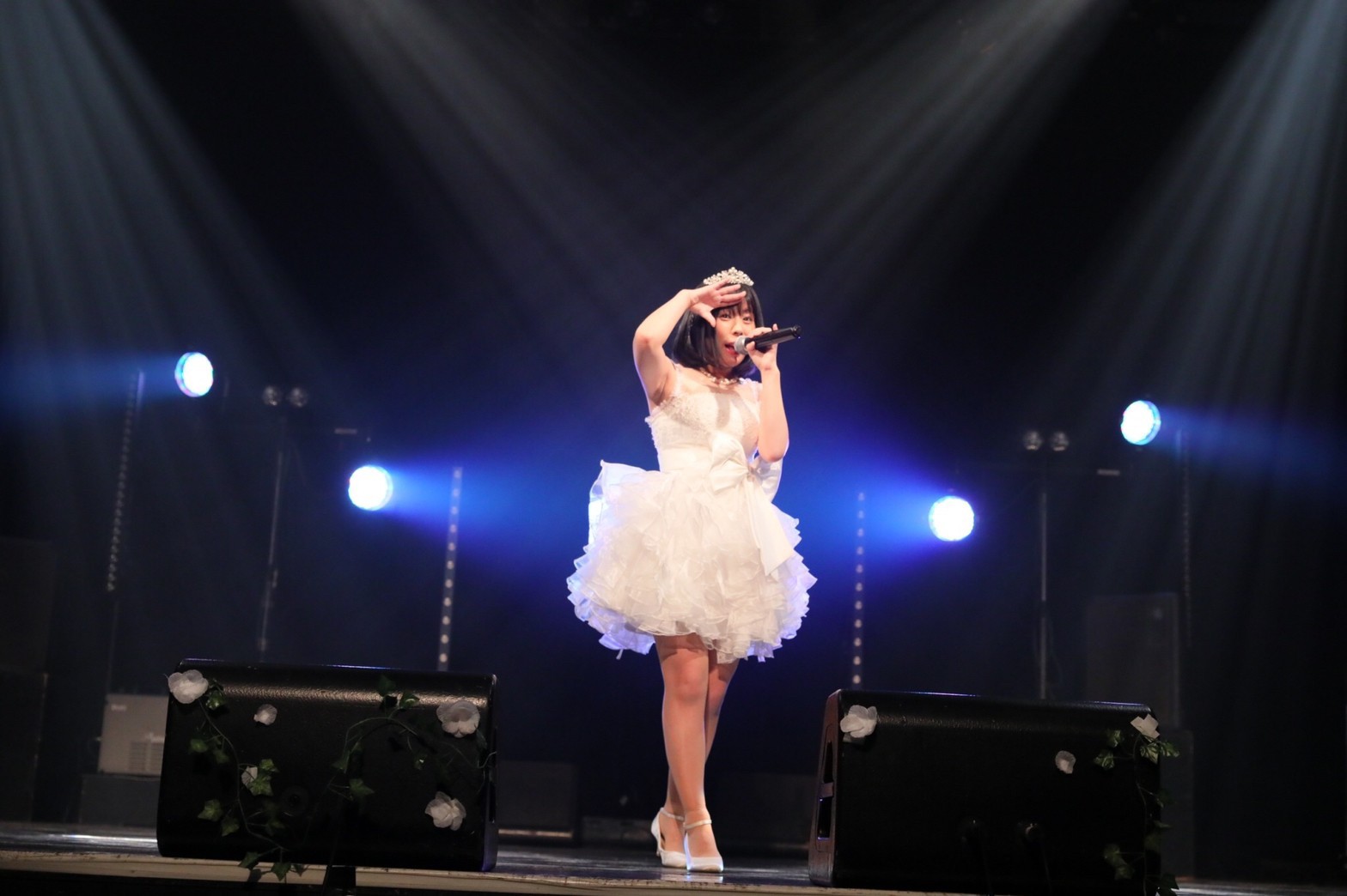 真っ白いドレス姿に着替えた仲川つむぎが舞台へ。まずは、観ている人たちへ向け手紙を読み出した。