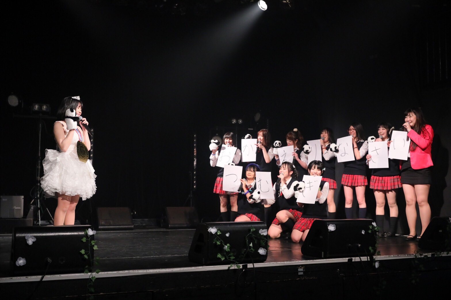 「つむちゃん、お誕生日おめでとう」の声を合図に、お馴染み「お誕生日おめでとう」が歌われた。メンバーみんなで誕生日を迎えた主役を祝福するように歌う、その姿を観るたびに幸せな気持ちになれる。 メンバーと一緒に「特別なお誕生日おめでとう 生まれてくれて 出会ってくれてありがとう」と歌いたくなる。メンバーにとっても、広報委員にとっても大好きで大切な人だからこそ。メンバーたちは仲川つむぎに寄り添いながら歌っていた。何時しか仲川つむぎの涙腺も緩みだす。後半には、メンバーみんながパンダ大好きな仲川つむぎのためにパンダの手人形を手に付け、歌っていた。