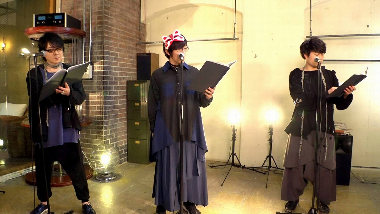 物語の深い設定とは裏腹に、今回の朗読劇では、バレンタインのチョコレートを題材に、娘の遥歌からのチョコを欲しがる和雪と、その様子について突っ込んでゆくイオリと半平太のやり取りを中心に物語は進んでゆく。最後のオチを受け、速水奨が●耳のカチューシャを付けたところ、佐藤拓也と野津山幸宏の演技を忘れたリアルな反応は、大きな見どころ。速水奨ファンなら見逃せないシーンだ。