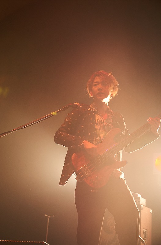 宏崇のドラムビートが強く鳴り響く。後半のブロックは、気持ちを騒がせる妖しくもメルヘンロックした「不思議な世界からの招待状」よりスタート。緩急を付けた演奏で高揚へ導くドラマを描きながら、観ている人たちの視線を釘付けにしてゆくメンバーたち。気持ちの熱を上げ続ける曲調のように、演奏に刺激を受け、フロアでも多くの手の花が頭上高く揺れていた。