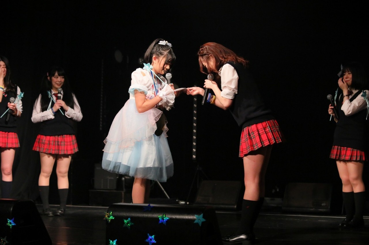 最後に高未悠加が、「今、言葉にできないくらい本当に嬉しいです」と、この日の感謝の言葉を述べ。メンバーみんなで「校歌」を斉唱。この日の感動を、次のライブへ繋げていった。