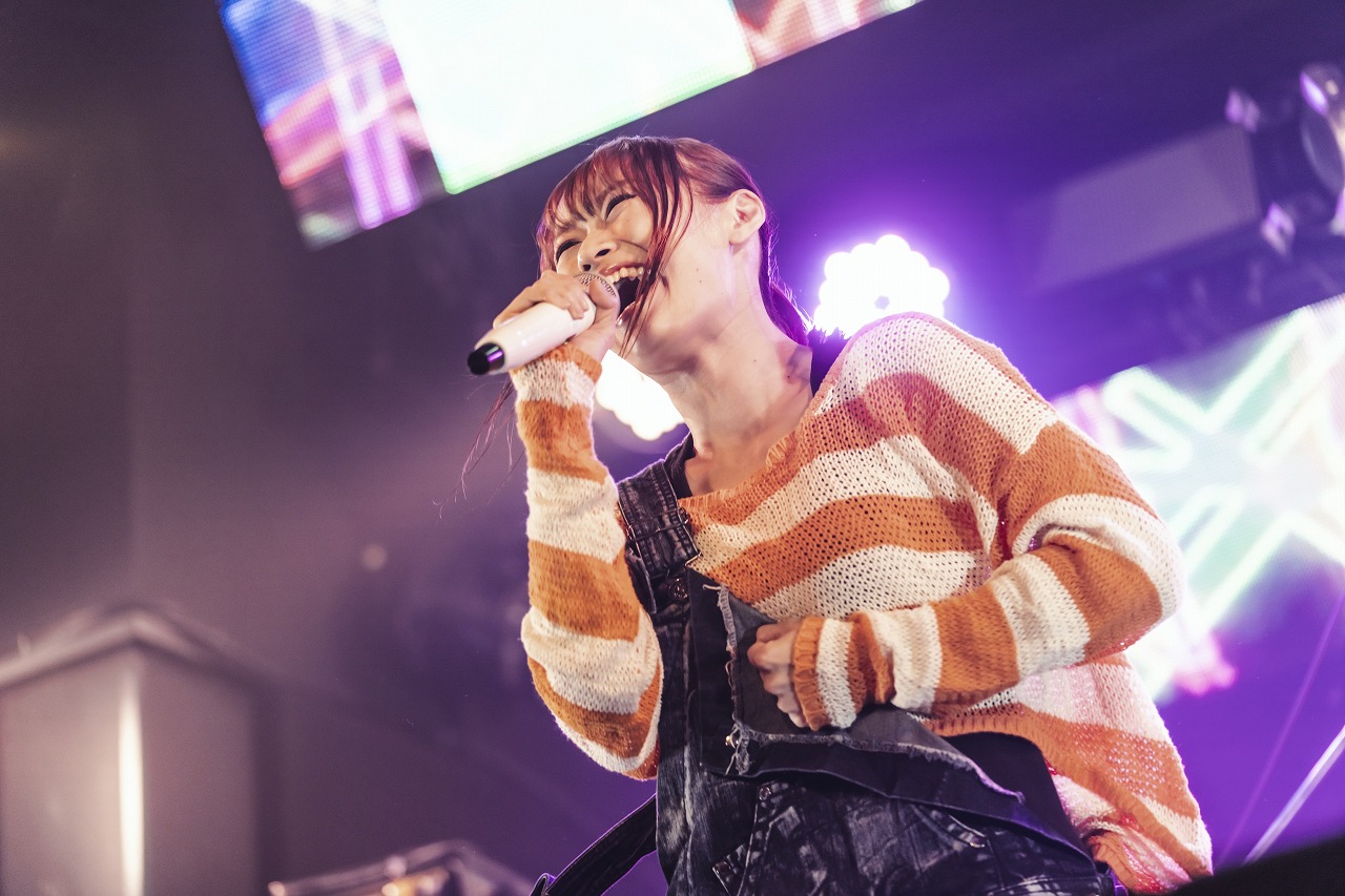 一転、エレクトロでダンサブルな華やかなロックナンバー「See the light」を披露。彼女の情熱的な姿を、楽曲を通して具現化。躍動した曲に乗せ、艶やかさも交えながら歌う姿は、熱情した妖艶な女性という今の彼女に似合う姿だ。続く「Crisp Day」でも、熱情したセクシーな姿で観客たちを煽りながら、フロア中の人たちの身体を揺らしていった。