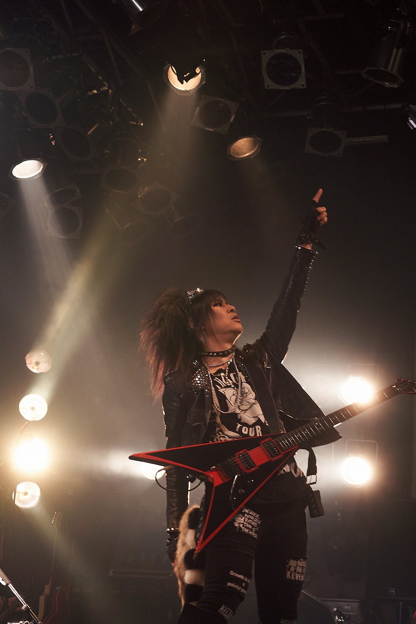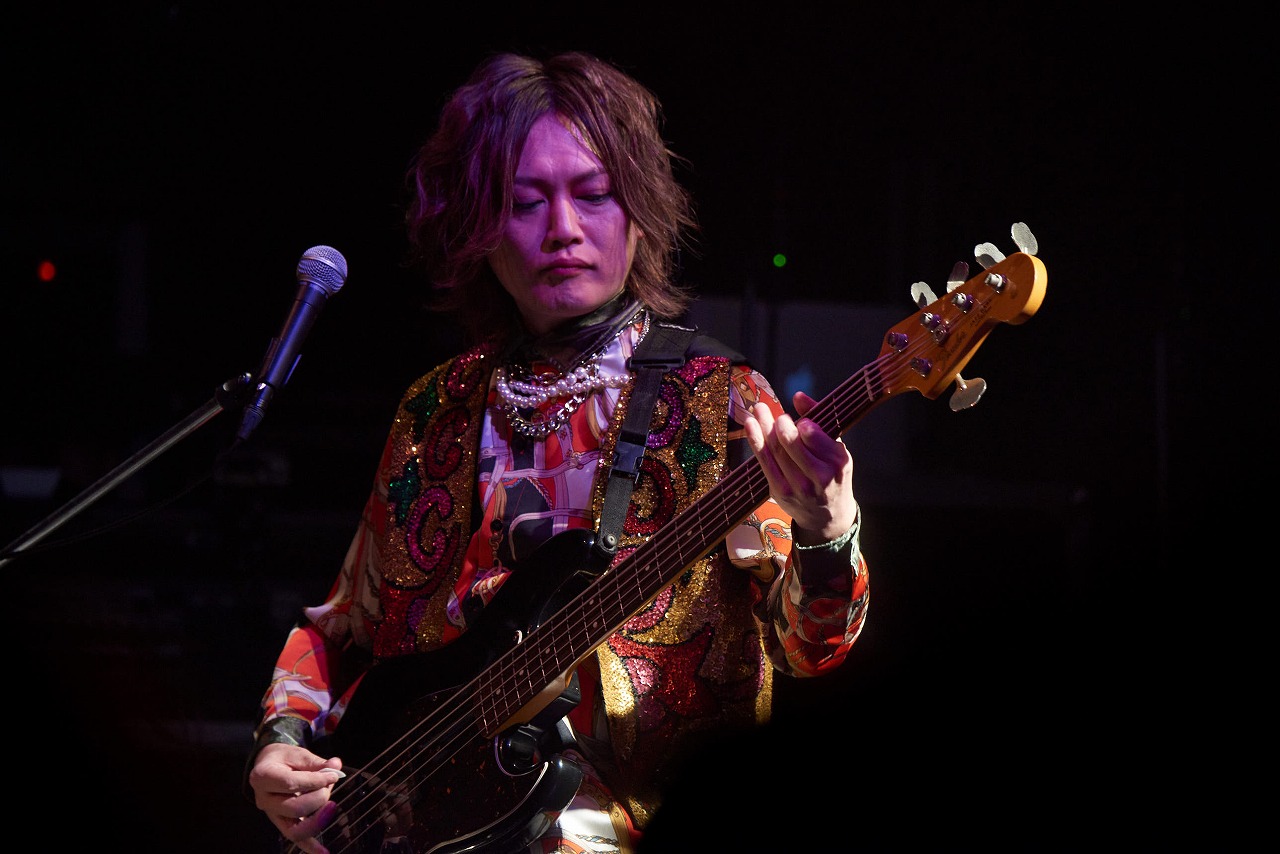 「こんな時代ですから、闇を切り裂く曲を作りました」。ここからは、最新シングルナンバーに描いた世界を具現化してゆくコーナーへ。最初に届けたのが、触れた人たちに前向きな気持ちを与えてゆくシングルの表題曲「Break The Darkness」だ。雄々しい歌声が響き渡る場内へ、ネガティブな時代や感情を切り裂くようにMSTRのギターの音が、Crack6の演奏が鳴り響く。凛々しい姿と声を突きつけ、MSTRは観客たちの沸きたい気持ちを鼓舞してゆく。共に、ここから駆けだそうと呼びかけるように、Crack6は挑発するようにスリリングな演奏を突きつけ、見ている人たちの心に、拳振り上げ立ち上がる気迫と勇気を注いでいった。騒ぐというよりも、その場で熱く魂を燃え盛らせる楽曲のように、フロア中の人たちも拳を振り上げながらも、込み上げる熱を身体中に溜め込みながら、暴発寸前の姿を作りあげていた。