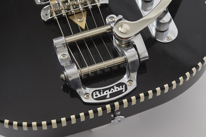 また、ビブラートアーム搭載モデルには日本製ロックペグ GOTOH マグナム・ロックを採用することによりチューニングの安定性とスムーズでストレスのない弦交換を実現。ナットは弦振動を効率よくギター本体に伝え、より大きな音量と素晴らしいトーンを得られる Graph Tech 社の TUSQ(人工象牙)を使用。ストラップピンはライブで抜け落ちてしまわないように一回り大きいサイズを取り付けるなど、細部にわたってデザインと機能性とサウンドを追求した弾き手想いのギターだ。
