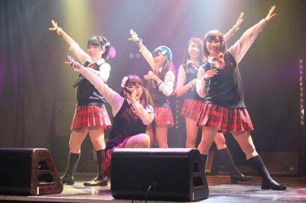 「もっともっとミラクルを起こしていくよー」と言ったのが、成田麻穂。「11月度つうしんぼランキング選抜メンバー」の成田麻穂・當銘菜々・山田みつき・高未悠加・佐々木千咲子の5人が歌ったのが、「ミラクる☆妄想ガール」。グループの中でもひと際キュートさを押し出したメンバーたちばかりのように、キラキラとした楽曲に似合うキラキラと輝き放つ姿を彼女たちは描きだしていった。青春という弾けた姿が、彼女たちにはとても似合う。終盤には、観ている人たちをカメラ目線で煽る場面も見せていた。