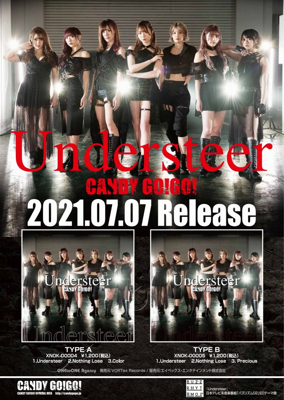 7月7日(水)にエイベックスエンタテイメントよりシングル「Understeer」をリリースするCANDY GO! GO!。同作品のジャケット写真と収録内容、さらに「Understeer」のMVが公開になった。今回も、A/B-TYPEとして発売。収録曲の「Understeer」が「バズリズム02」(日本テレビ系)の7月度エンディングテーマとして流れることも決定している。