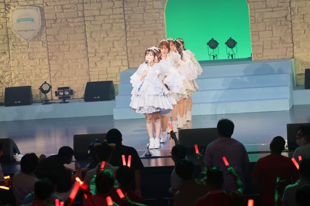 続く「愛呼吸」も、ライブでよく耳にしてきた楽曲だ。胸を躍らせる曲に乗せ、彼女たちはいつも応援してくれる仲間たちに向け「大好きだよ」と真心を込め、真っ直ぐに歌いかける。その告白へ触れるたび、なぜか照れてしまい、心がポッと熱くなる。彼女たちに「大好きだよ」と歌われるたび、ときめきが止まらない。