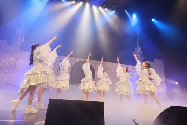 「最高のワンマンライブにしましょう!!せ~の!!」の声に合わせ、ライブがスタート。幕開けを飾ったのが、「こじらせ片想い」。彼女たちは、舞台の上から「君が好きです」と歌いかける。その声へ触れるたび胸が高ぶり、気持ちがときめきだす。7人は舞台の上で心地好くステップを踏みながら、いつものように愛らしい笑顔で「君が好きです」と歌っていた。きっと会場に足を運んだ人たちも、彼女たちが「君が好きです」と歌うたびに「おれもー!!」「誰よりもー!!」と心の中で叫んでいたに違いない。こじらせた胸のドキドキが止まらない!!