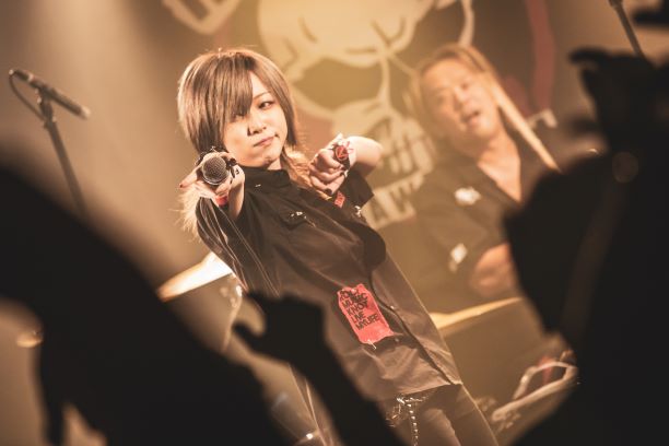 早くもフロア中に熱が生まれだしている。その熱と勢いをもっともっと高ぶらせるように、愛沢絢夏は「go for it」を突きつけた。ときに優しい声も響かせながら、彼女は熱く声を張り上げ歌っていた。でも、ここに仲間たちと集った楽しさを隠すことが出来なかったのだろう。挑む表情の中にも笑みが零れていた。フロアでも、沸き立つ気持ちを高く掲げた拳に変え、大勢の人たちが舞台上に想いをぶつけてゆく。誰もが心の中で「Oi!」「Oi!」と叫びながら、愛沢絢夏と同じようにみずからの心を輝かせるために拳の翼を羽ばたかせ、熱狂という大空へ飛び立とうとしていた。
