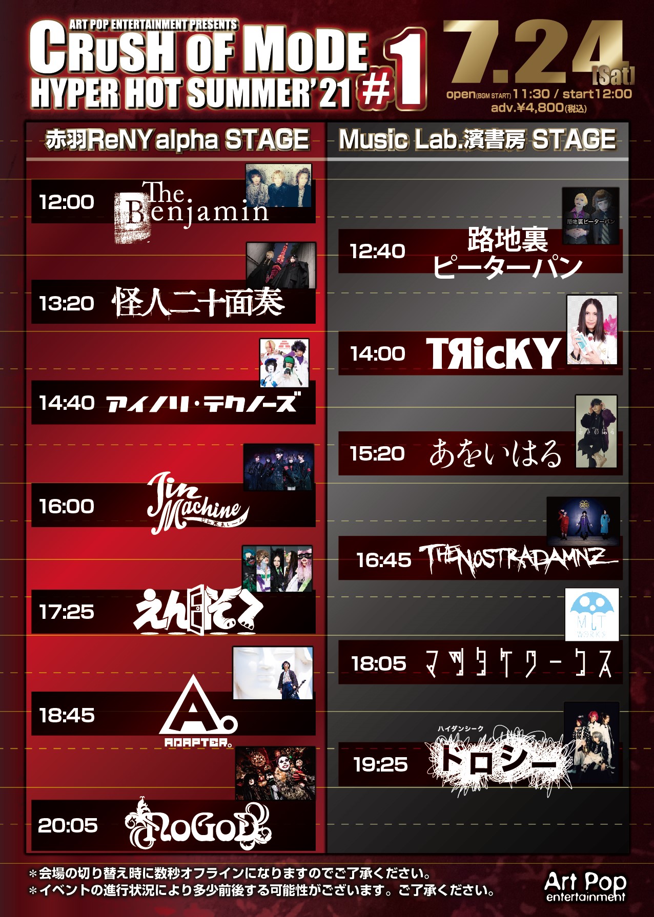 ADAPTER。/NoGoD/えんそく/Jin-Machine/怪人二十面奏/The Benjamin/アイノリ・テクノーズ