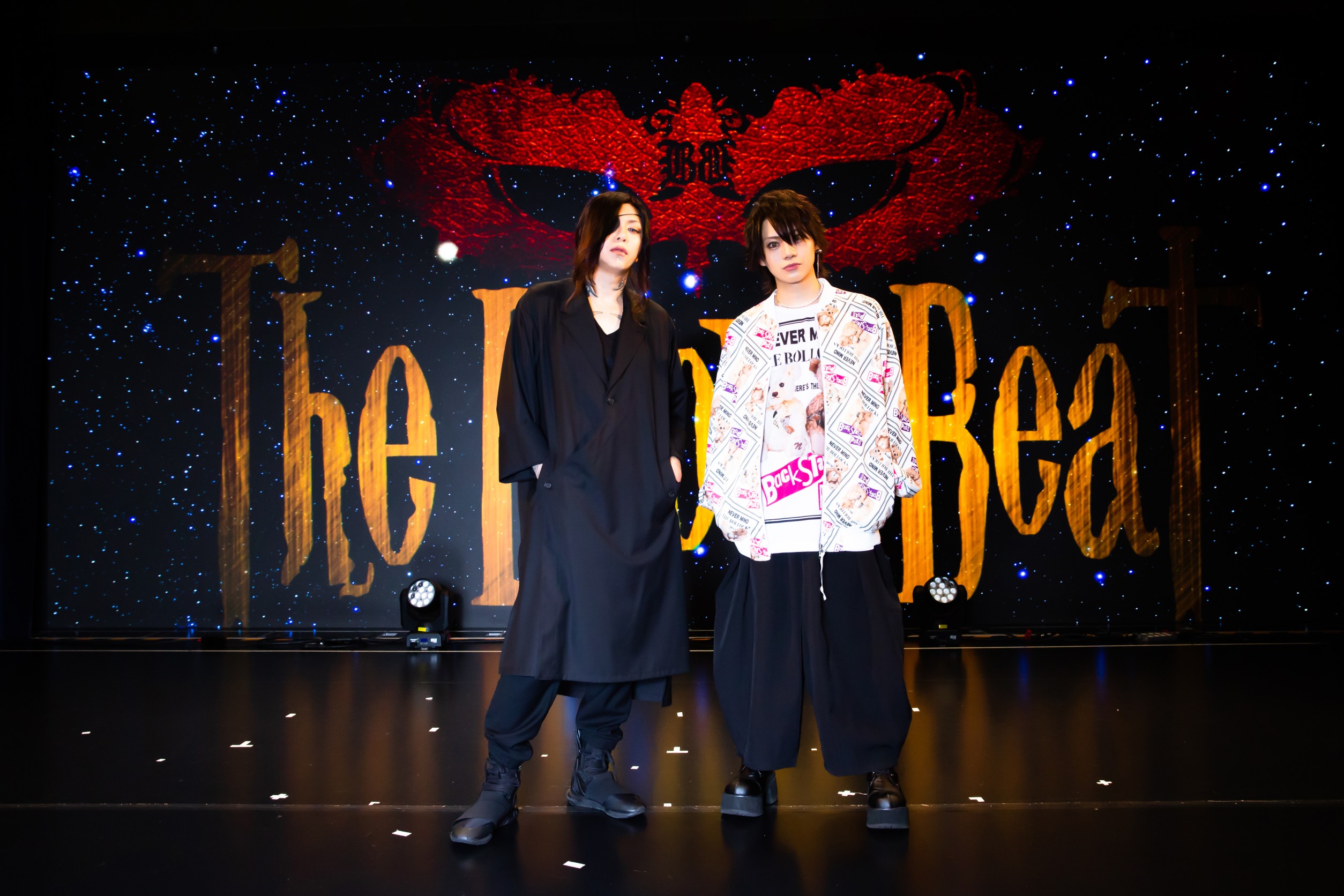 まずは、1stアルバム『ラグナロク』の話から。背景に映し出された写真を見て「懐かしい」と言いながら、想い出を振り返りだした。アルバムタイトルが決まった理由について、HAKUEIが「ラグナロクとは神話に出てくる用語で、神々の最終戦争が地球上で起こり、一度人類がリセットすることを意味している言葉。それくらい大胆な気持ちでThe Brow Beatが”破壊と再生”をテーマに活動していくんだという想いを込めて名付けた」と語っていた。Ryujiは、「Rからタイトルが始まったことが嬉しかった」とも述べていた。他にもHAKUEIは、「神々の戦争と共にRyujiが誕生」「最強の存在」「まさにThe Brow Beatはラグナロクを起こす」と、次々と熱い言葉をぶつけていた。