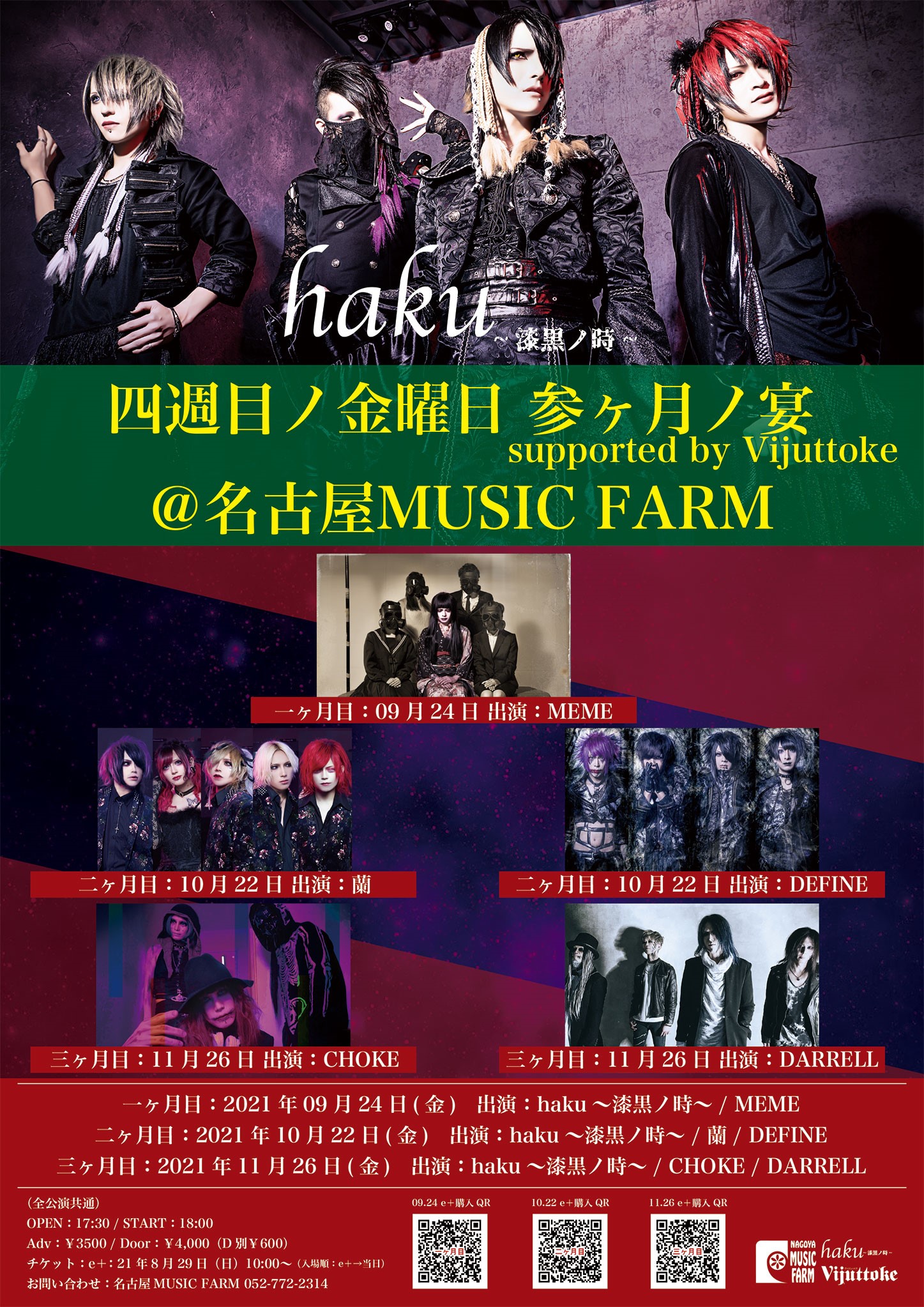 11/26(金) 公演三ヶ月目:haku~漆黒ノ時~ / DARRELL / CHOKE