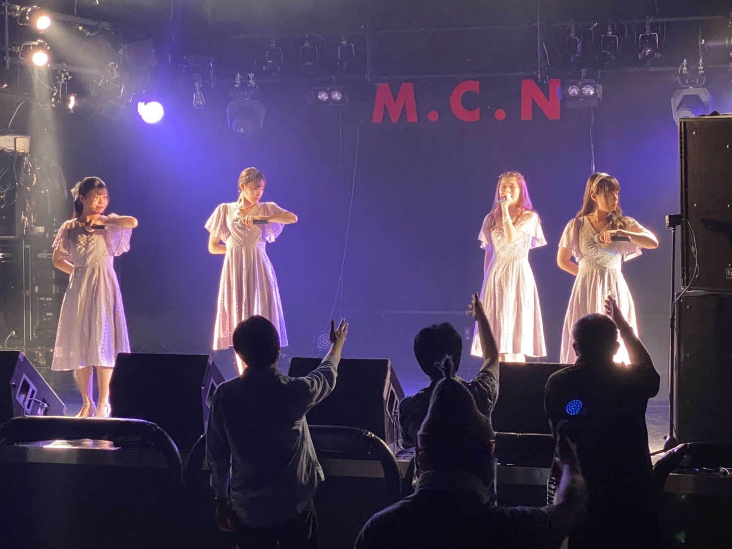少しずつ、でも、確実に観ている人たちの感情へ熱を注ぎ込むように、CHERRY GIRLS PROJECTは「透明人間」を歌いだした。激しく揺れ動く気持ちを力強い歌声に込め、必死に自分の居場所を見いだそうと彼女たちは心の声を上げてゆく。後半での彼女たちは、体感的な衝動以上に激しく感情を揺さぶる歌の数々を通して、フロア中の人たちの心を熱く揺さぶってきた。その衝撃が、躍動する楽曲とシンクロし身体も激しく揺れだしていた。
