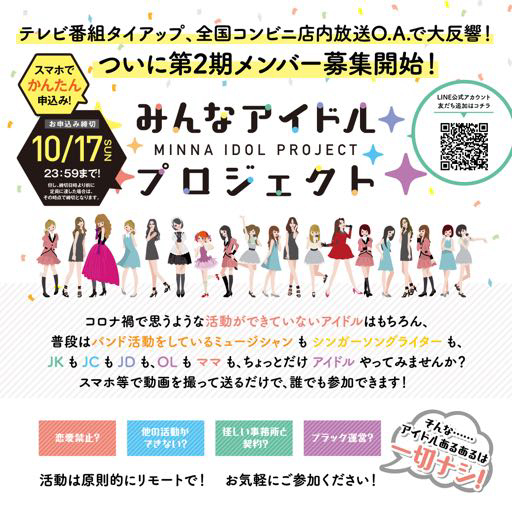 そんな「みんなアイドルプロジェクト」が遂に 2 期メンバーの募集を開始。申込み方法は公式 LINE にダンス動画を送るだけ。