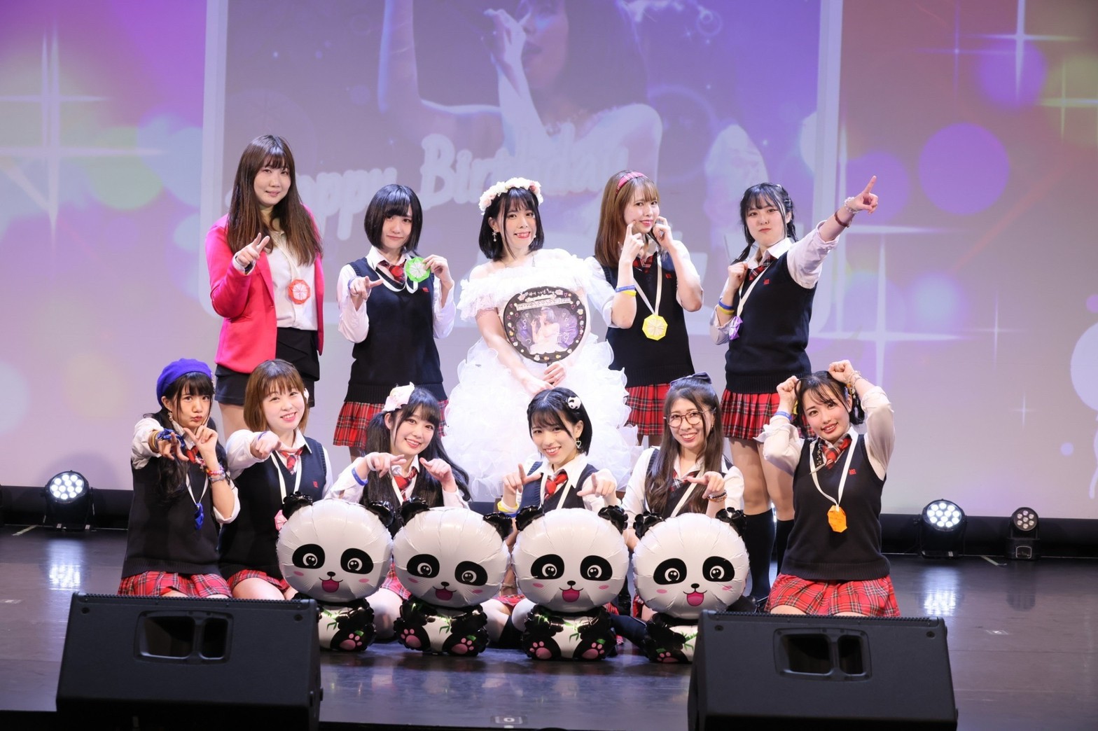 仲川つむぎが大好きなパンダの風船を持って、メンバーが登場。「つむちゃ~ん、お誕生日おめでとう」の声を合図に、みんなで歌ったのが、誕生日の人をお祝いする「お誕生日おめでとう」。メンバーみんな、パンダの風船を手に、主役の仲川つむぎに向け「おめでとう 」「出会ってくれてありがとう」と、愛しい思いをたっぷり込めながら笑顔で歌っていた。仲川つむぎを中心に、メンバーたちが次々寄り添いながら歌う姿を見ていると、微笑ましい気持ちと同時に、最高の仲間たちと一緒に笑顔で過ごせていることに羨ましさも覚えてしまう。その姿を見ながら、一緒にその仲間に加われた気持ちになれたことも、素直に嬉しかった。