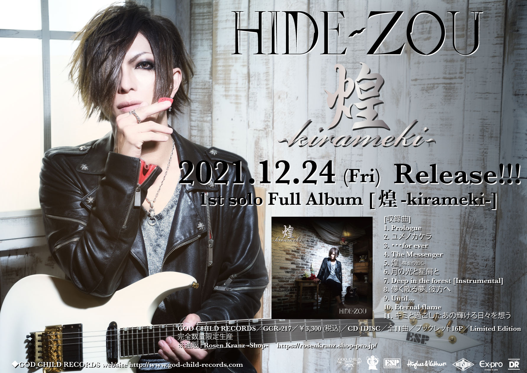DのギタリストHIDE-ZOU、12月24日(金) ソロ初作品として1st フルアルバム「煌-kirameki-」のリリースが決定!