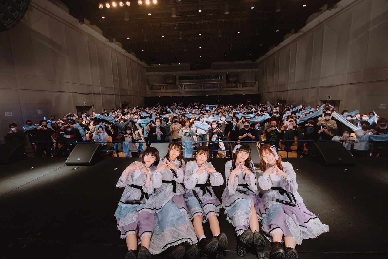 「新しい季節に描いた物語 誰も知らない未来の扉を開いて」。工藤みかが作詞をした「カルミア」を、5人は歌声を重ね合わせ、アカペラで歌いだした。楽曲が力強い音を響かせるのに合わせ、5人の歌声にも力強さが漲りだす。同じく、工藤みかが作詞をした「Puzzle」でも、「僕の声 君の声 重ねた歌を」と、メンバーそれぞれが歌声をリレーする形で歌っていた。2曲とも、強い勇気と願い、意志と決意を持った歌だ。前を向くいろんな思いのピースが埋まることで、その願いや思いは形を成す。そう信じるように彼女たちは、舞台上でダイナミックな動きを見せながら「カルミア」や「Puzzle」を歌っていた。その歌声が、自分を輝かせ、前へ突き動かすピース(姿)に変えてくれた。そのピースをもっともっと集めて、さらに大きな景色をみんなで描きたい。そんな気持ちにも心は染まっていた。