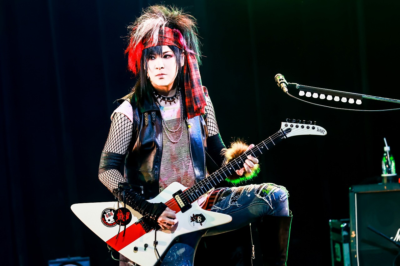 早くも、ライブは終盤戦へ。MCでは、「もう一つオリンピック非公式応援ソングがある」とHAKUEIが説明。飛びだしたのが、感情を熱く掻きむしる轟音ヘヴィロックナンバーの「Justice」だ。「Fate! fate!」とがなるHAKUEIの声が、「フレー!フレー!」と聞こえていたのは、耳の錯覚か?!煽る様などパンキッシュな要素も備えた楽曲のように、HAKUEIの煽り声へ千聖も煽り声を重ねながら、観客たちの身体を騒がせてゆく。