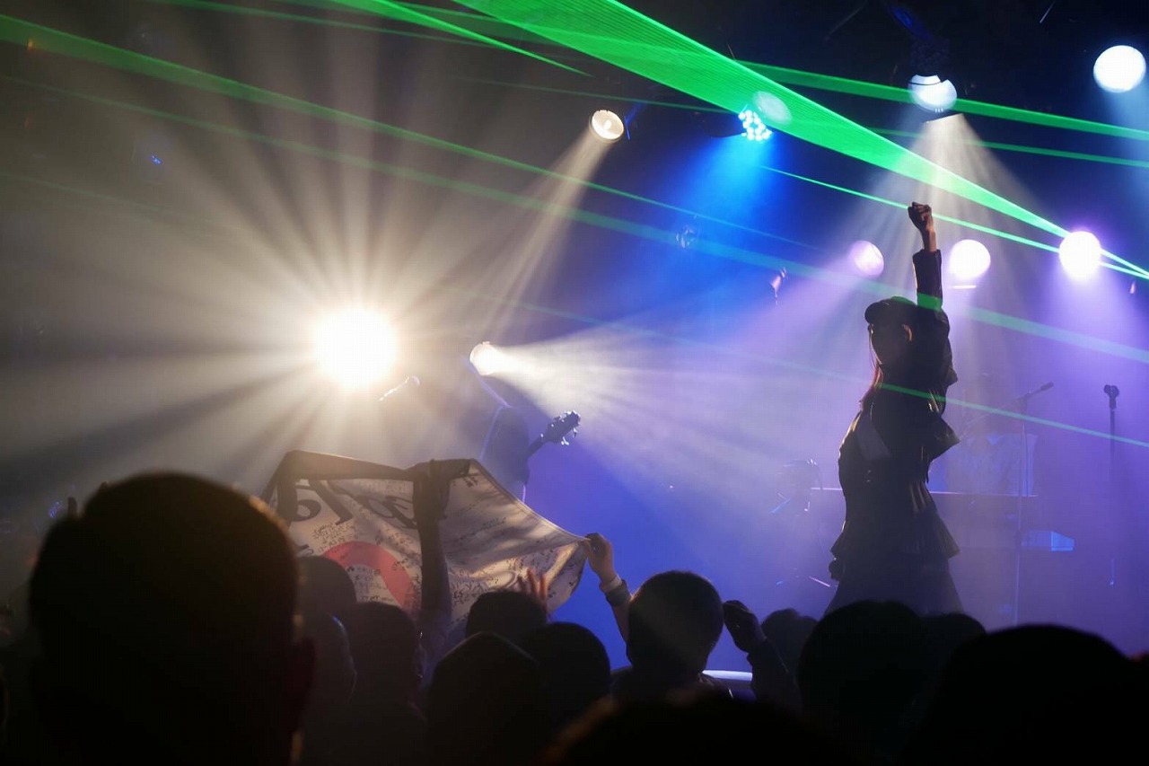 訪れた人たちのハートを分厚い音の弾丸で撃ち抜くように、Risky Melodyは攻撃的で刺のある「It’s OK」を叩きつけた。感情を荒ぶるモードへ入れたALICEは、観客たちへ挑みかかるように舞台の上から牙を剥き出しに歌声をぶつけていた。荒ぶる彼女の気持ちへ、さらに黒い衝動を描き加える演奏陣。雄々しい歌と演奏に触発され、フロアからも熱い手拍子が飛び交い、掲げた拳が何度も何度も天高く突き上がっていた。
