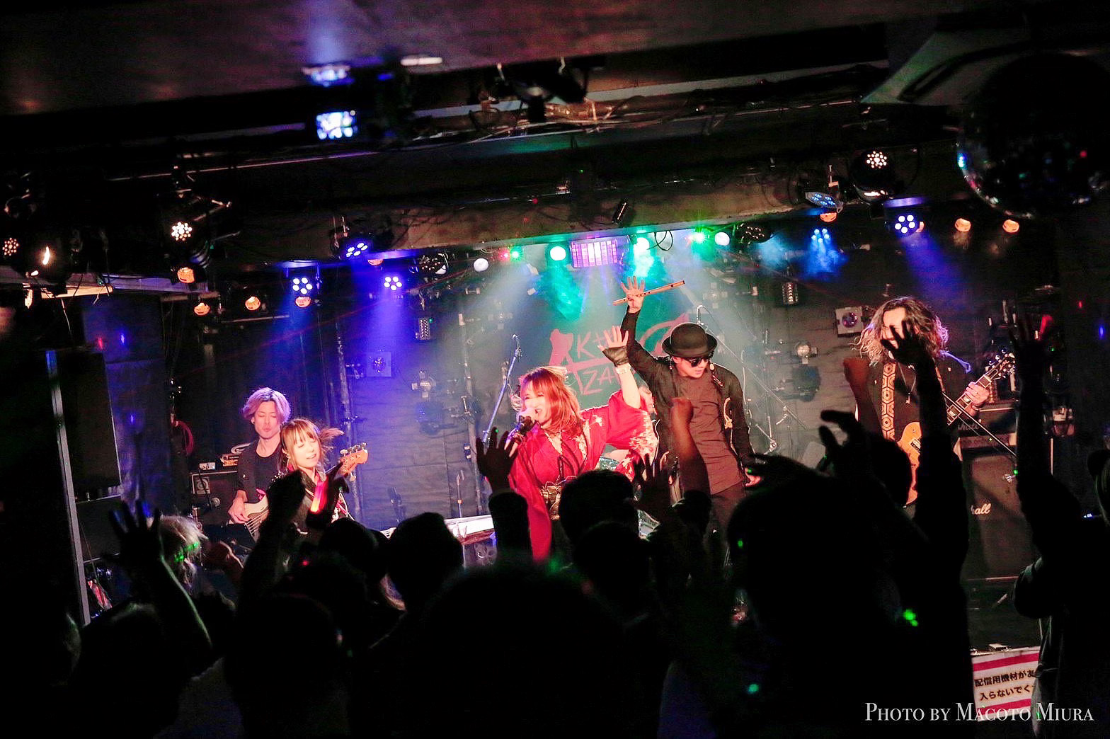その種をより多くの地域に広げようと、「AKARAZAWA」は1月28日(金)に吉祥寺SHUFFLEを舞台に、初の東京公演を主催した。この日は、AKARAのメンバーであり、箏奏者のTommyの生誕祭も兼ねての開催。さらにAKARAは、同日より最新CDシングル「BERSERKER」の発売も開始した。