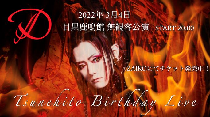 3/4 (金)に開催される目黒鹿鳴館 無観客公演(生配信) Tsunehito Birthday Liveの視聴チケットが発売開始!