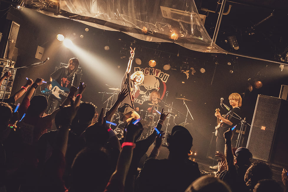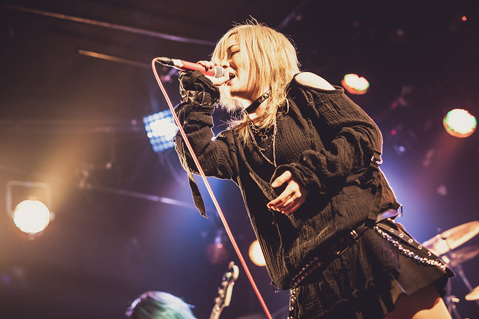 愛沢絢夏の「ぶっ壊れていこうぜ」の声に相応しい、轟音ロックが鳴り響く。愛沢絢夏は、「叫べ」「壊せ」と言葉にしていた。「stay alive」に刺激を受けた観客たちが「オーオーオーオー!!」と勇ましく両拳を突き上げながら、暴れ狂う野獣と化していた。「解き放て」「壊せ」の歌詞通り、自分を現実に縛りつける理性なんて、この曲を通して壊してしまえ。