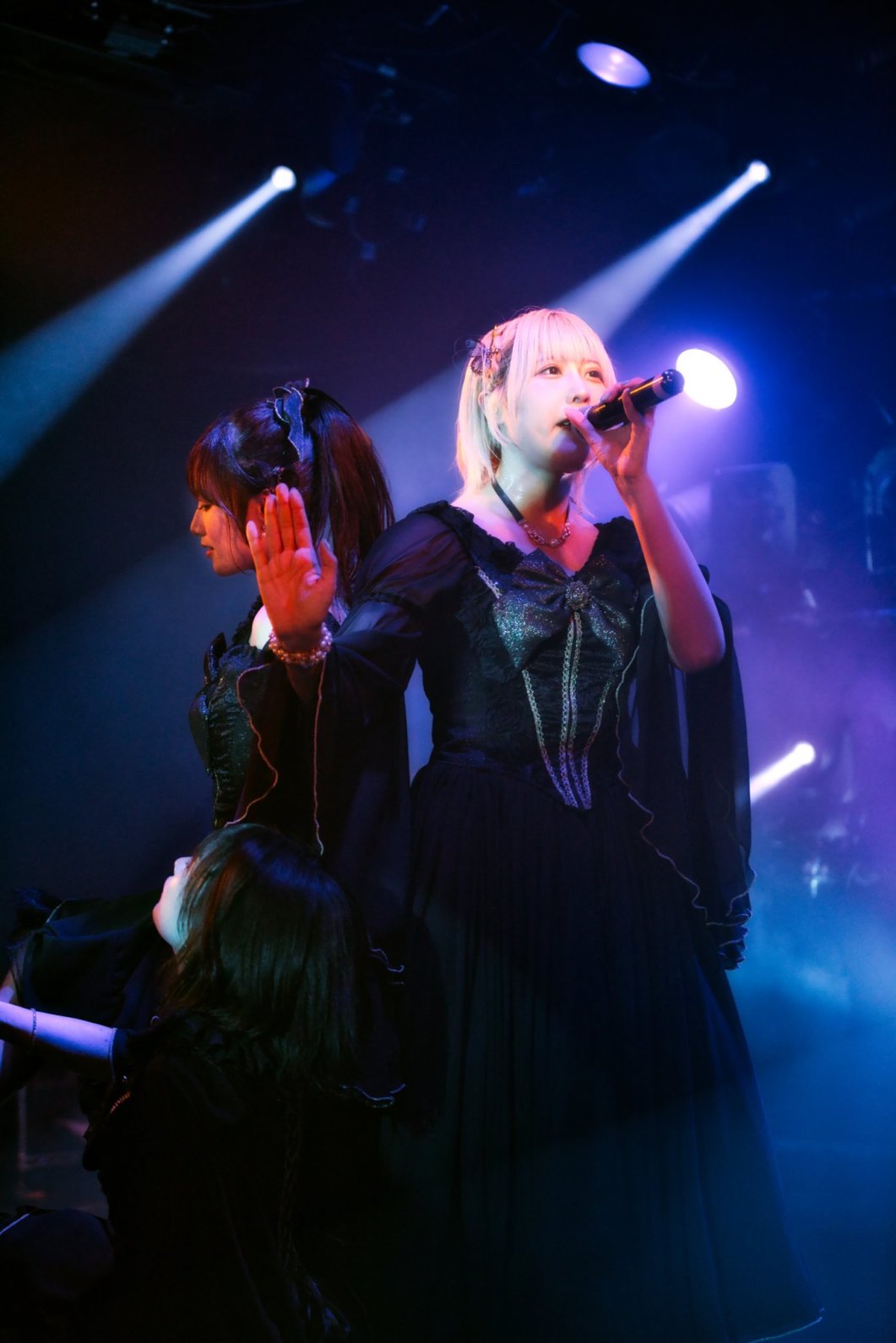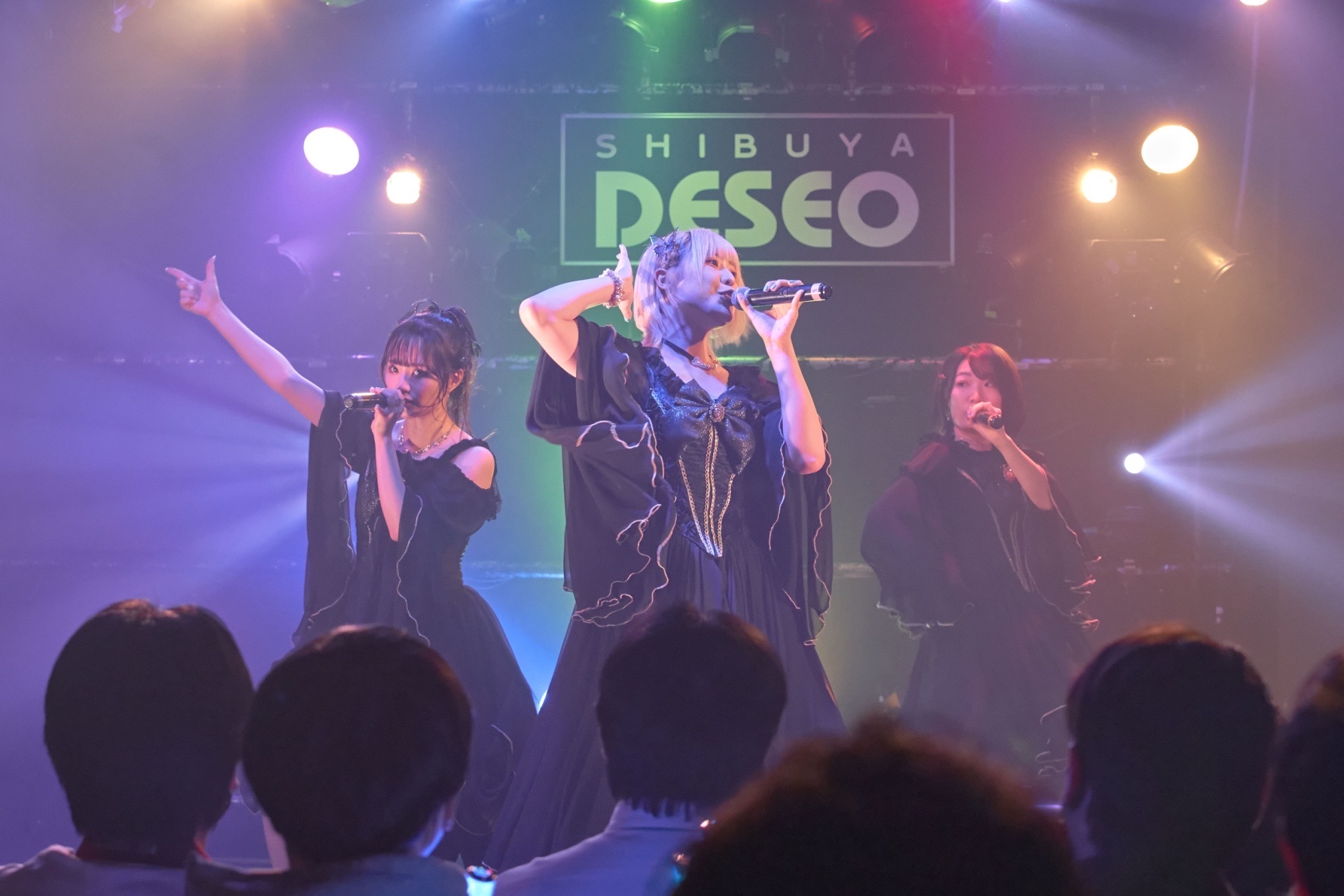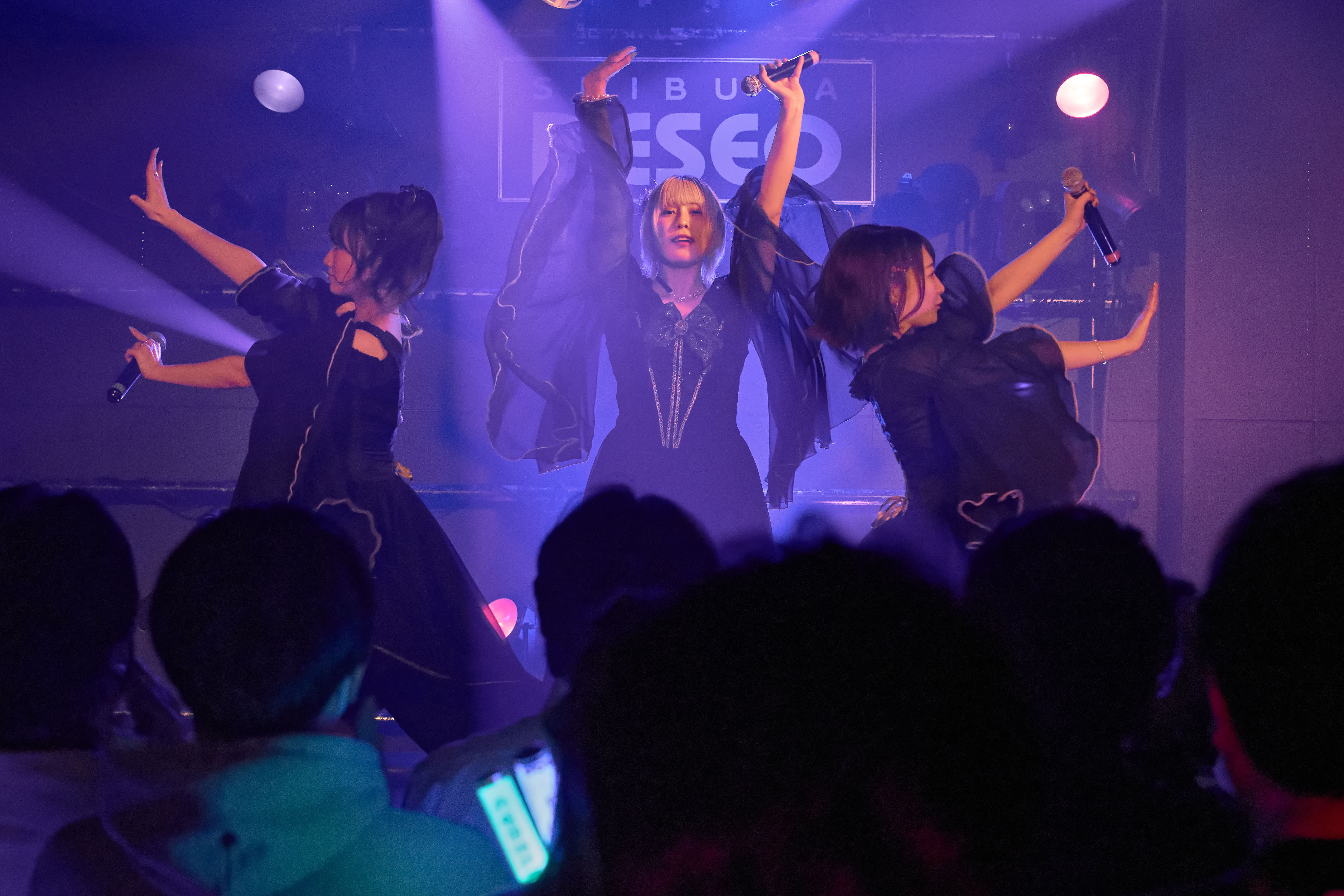 これまでの愛らしい姿から一気に表情を塗りかえるように、CUBΣLICはダウナーでラウドな激烈デジロックナンバー「EXMACHINA」をぶつけてきた。この曲ではダイナミックに踊る姿を見せれば、3人はしゃくり声も混ぜながら激しく叫んでいた。誰が中心ではなく、3人が均等に激しく声を唸らせる。中でも黒川音は、声を枯らす勢いでオラオラとせまっていた。たとえスクリーム系の要素がなくとも、楽曲の持つ破壊力へ闇要素を塗り重ねるパワーを新生CUBΣLICは十分持っている。切れ味鋭くも大胆なパフォーマンスで躍る姿を見ていると、ラウドな面をこれからどう進化させるのかにも期待したくなる。