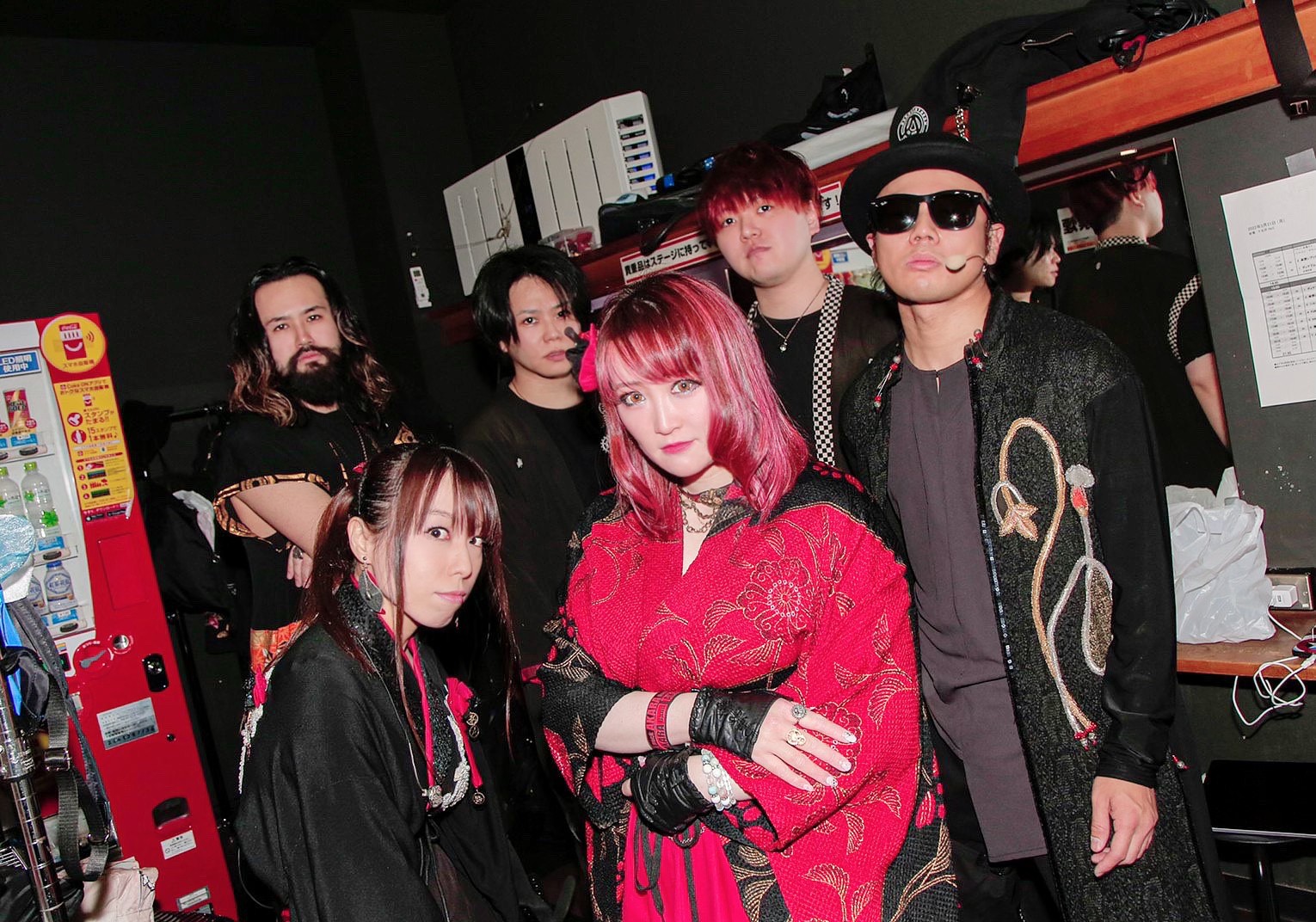 先に披露したのが、「Chronicle」。戦慄にも似た、何かが起きそうな予感を覚える荘厳でシンフォニックな音色が流れだす。「Chronicle=年代記」という言葉に相応しい、壮大なドラマを描きだすスリリングな楽曲だ。永遠の命を手にしたヴァンパイアの命途絶えないからこそ嘆く感情など、悲劇とも言える物語を、MIKIKOは語り部となって歌い唱えてゆく。ゴシックでシンフォニックな音の上で、TAKAの篠笛が泣き叫ぶように狂気した音色を響かせる。Tommyの奏でる箏の音は、ときに乱れ狂う感情へ攻撃的に寄り添えば、ときに嘆く心を凛とした音で包み込んでいった。物語の展開に合わせ、楽曲も、MIKIKOの歌声も様々な表情を見せてゆく。この「Chronicle」、壮大な序章から幕開けたとたん、一気に物語を走らせ、長大なクライマックスシーンへと繋がるような、激情したドラマを描きだす楽曲だ。AKARAのメンバーたちは、哀しいヴァンパイアの恋物語を歌い奏でながらも、その中へ、ここへ至るまでの様々な苦難と逆境を乗り越えた不屈の闘志を重ね合わせていた。MIKIKOも、Tommyも、TAKAも、現状を壊し、ここから新たな物語を描き出そうという強い意思を、この曲に思いきりぶつけていた。