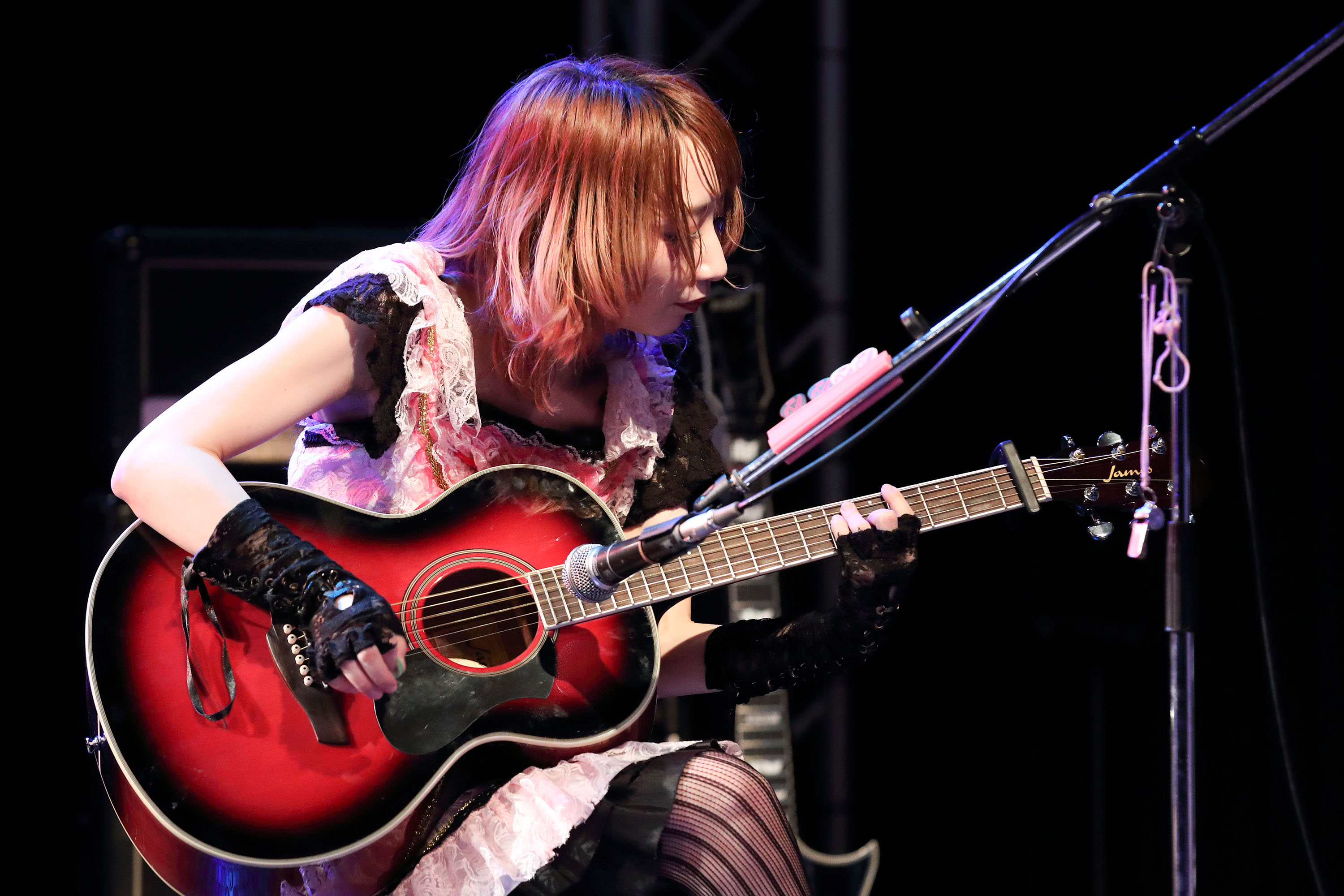 次に披露したのが、ファン投票リクエストNo.1 に輝いたバラードの『sugar』。この曲では葵がカホンを、えれんがアコギを手に、アコースティックスタイルにアレンジして演奏。愛しい人に会いたい思いを温かく歌い上げるねねの歌声からスタート。この曲では、揺れ動く感情へ寄り添うように歌うねねの歌声を、演奏陣が音数を抑え、優しく後押してゆく。『 sugar』を通して、ねねの歌声の魅力をたっぷり味わえたのも嬉しかった。