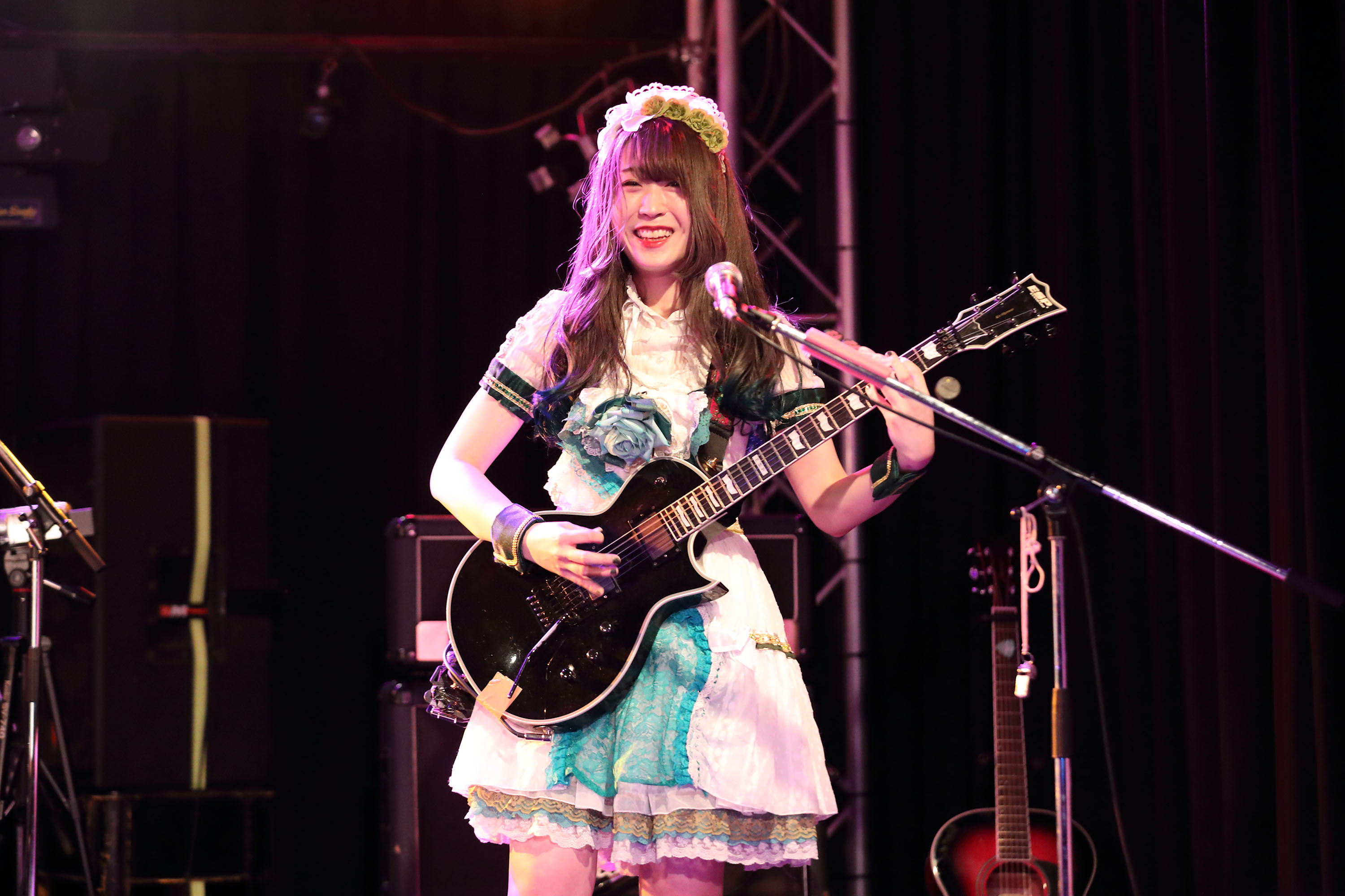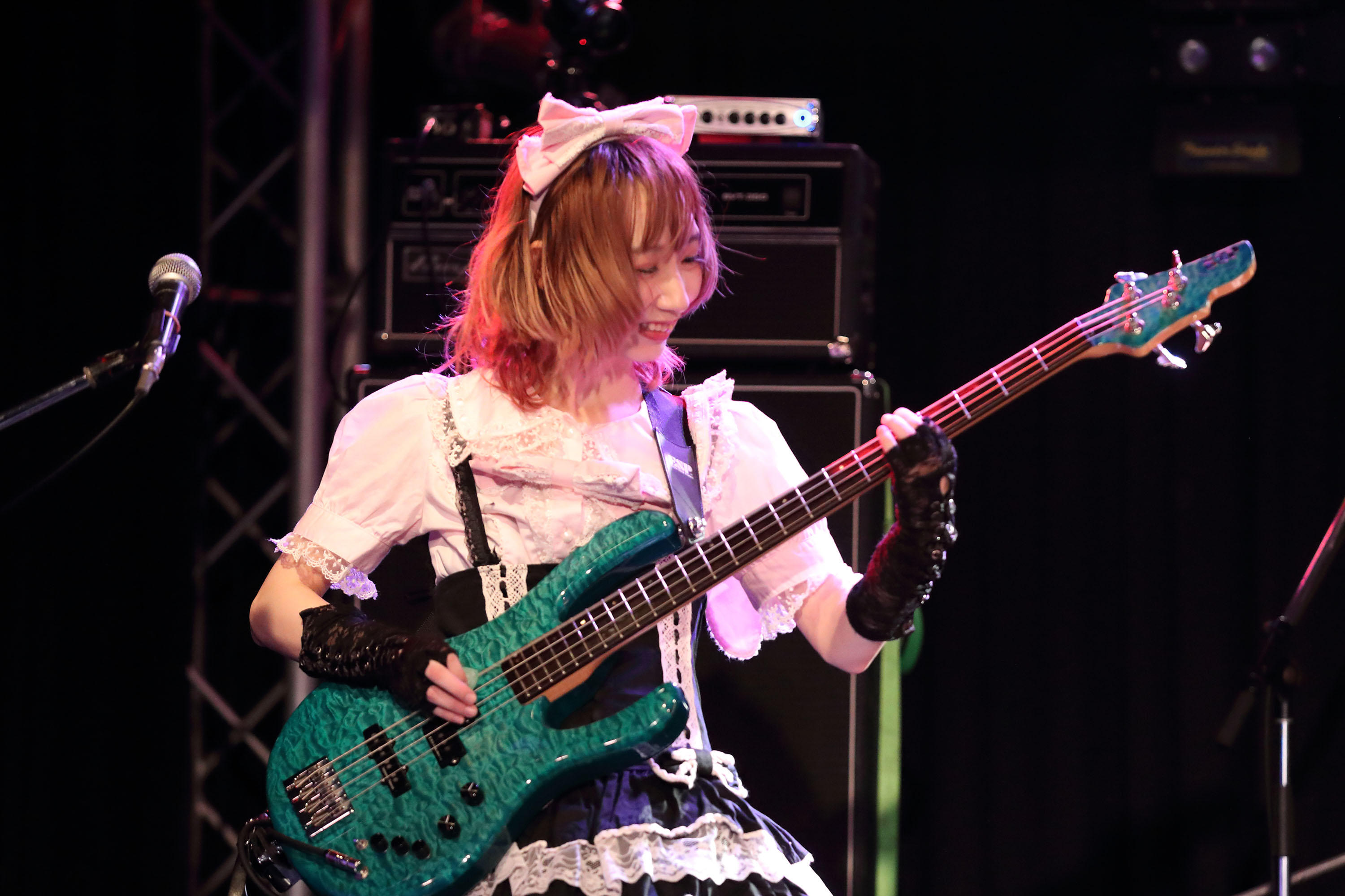 続いては、パートチェンジ演奏へ。ここではドラムをねねが、ベースをえれんが、ギターをりんが、ヴォーカルを葵が担当。披露した『エール』で 4 人は,未熟な技術面を勢いで誤魔化していた。曲調がポップでキッシュという理由もあるが、まるで高校生たちが青春パンクナンバーを演奏しているようで、とても新鮮に見えていた。
