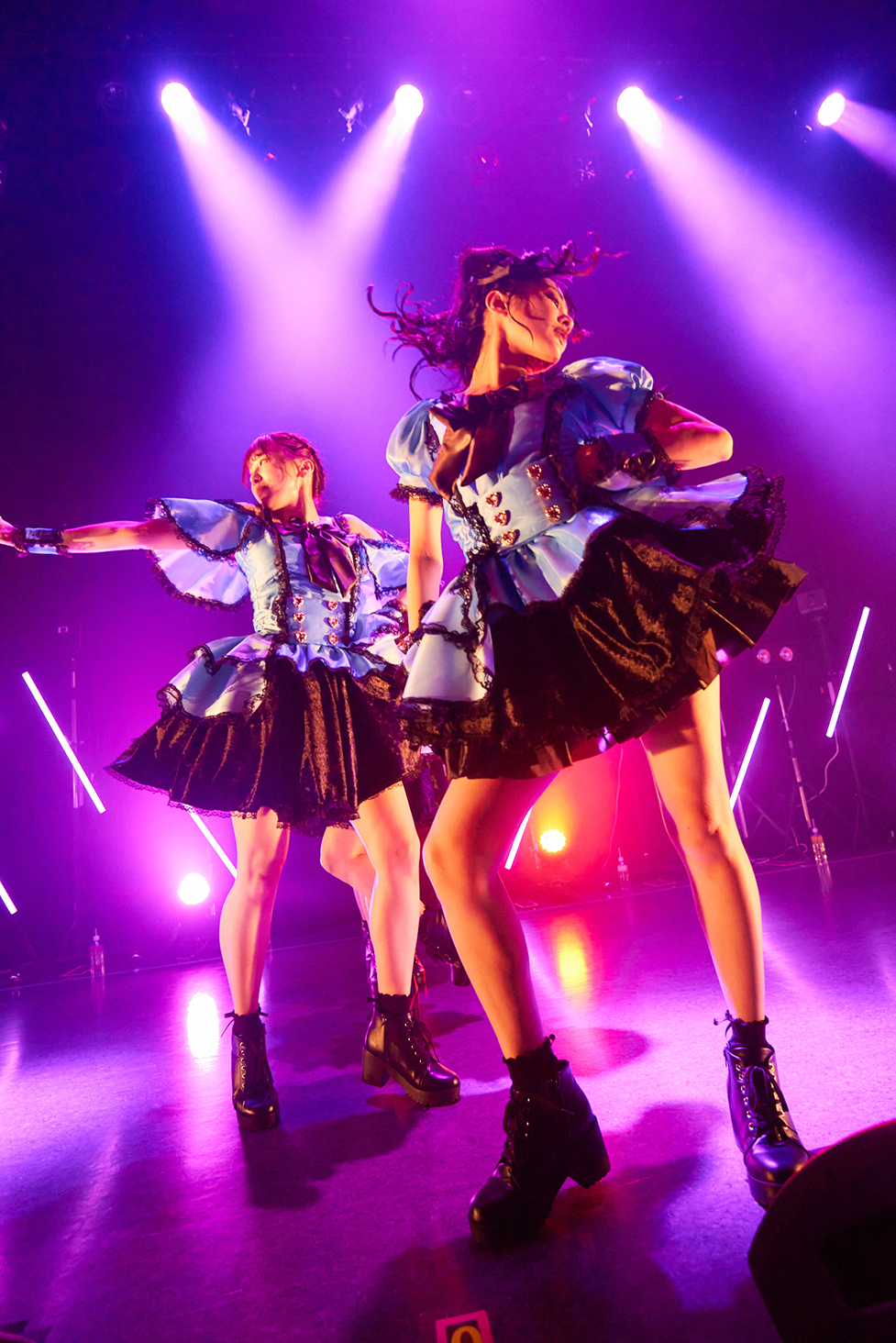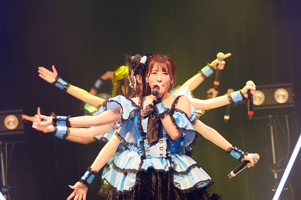 次に披露したのが、パスタシリーズの中から『純愛ペスカトーレ』と『黒歴史イカスミパスタ』。異なる曲調を用いて、彼女たちは恋する女性のドキドキした恋心を、乙女心と大人の女性の艶めいた恋心に分けて届けてきた。『純愛ペスカトーレ』で見せたピュアな眩しい恋心。『黒歴史イカスミパスタ』では恋の傷を持つ大人の女性になり、艶気交じりに歌っていたように、そこへ恋する女性の多面的な心模様を感じていた。