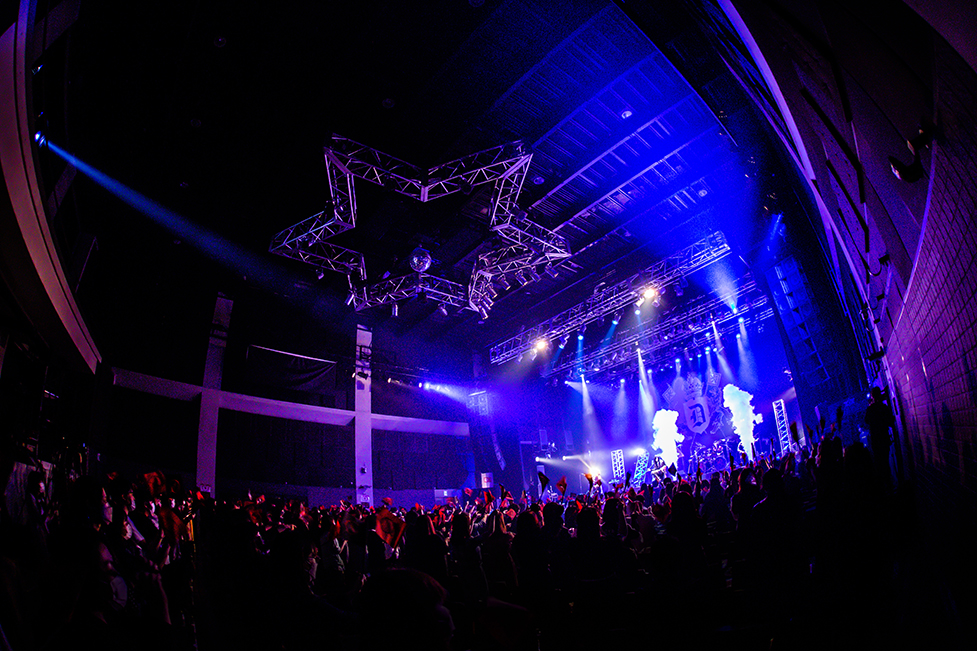 この景色を待ち侘びていたファンの熱量でフロアの温度は一気に上昇、1曲目の「Night-ship“D”」がスタート。ステージにCo2が噴き出し会場中にDお馴染みのフラッグが揺れ、メンバーの表情にも笑顔が溢れていた。