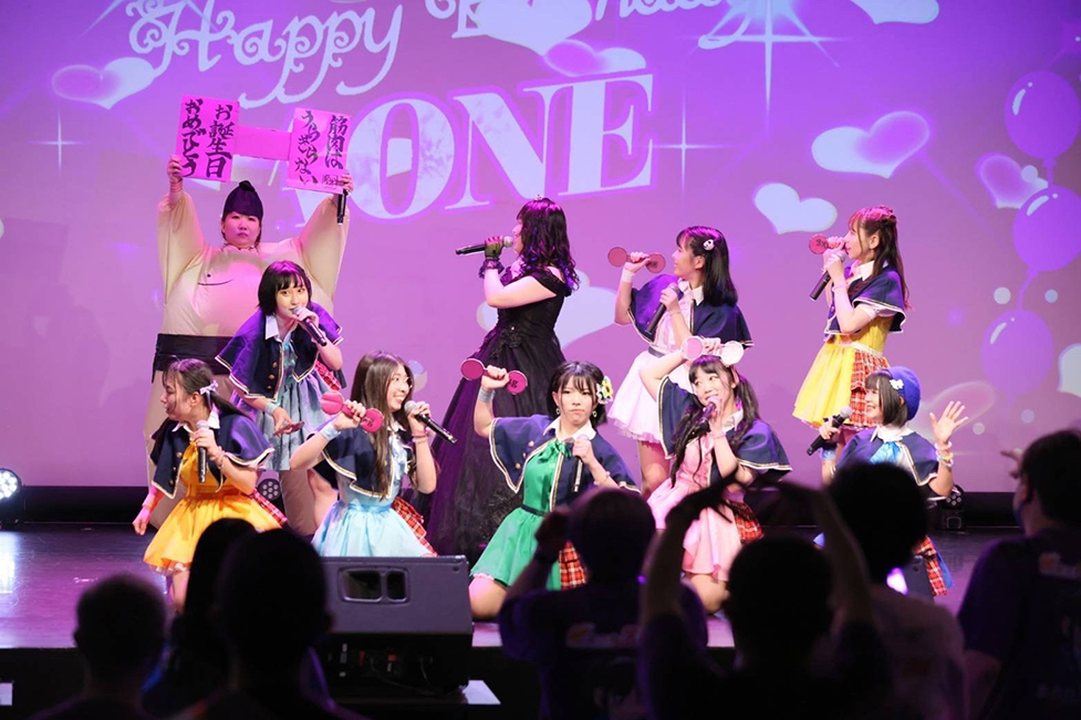 楽しい時間もあっという間だ。蒼音舞生誕祭も残すところあと2曲。次に歌うのは「ミラクる☆妄想がーる」。歌うメンバーの後ろでは、鍛え上げられた筋肉が描かれた服を着たり、マッスルポーズを決めたりするなど、今日もファンを笑わせるパフォーマンスを披露してくれた。熊野はるは、女性三人分はあろうかと思える相撲のコスチュームを着て登場。マイクが持てないため、メンバーにマイクを持ってもらって歌う場面もあった。