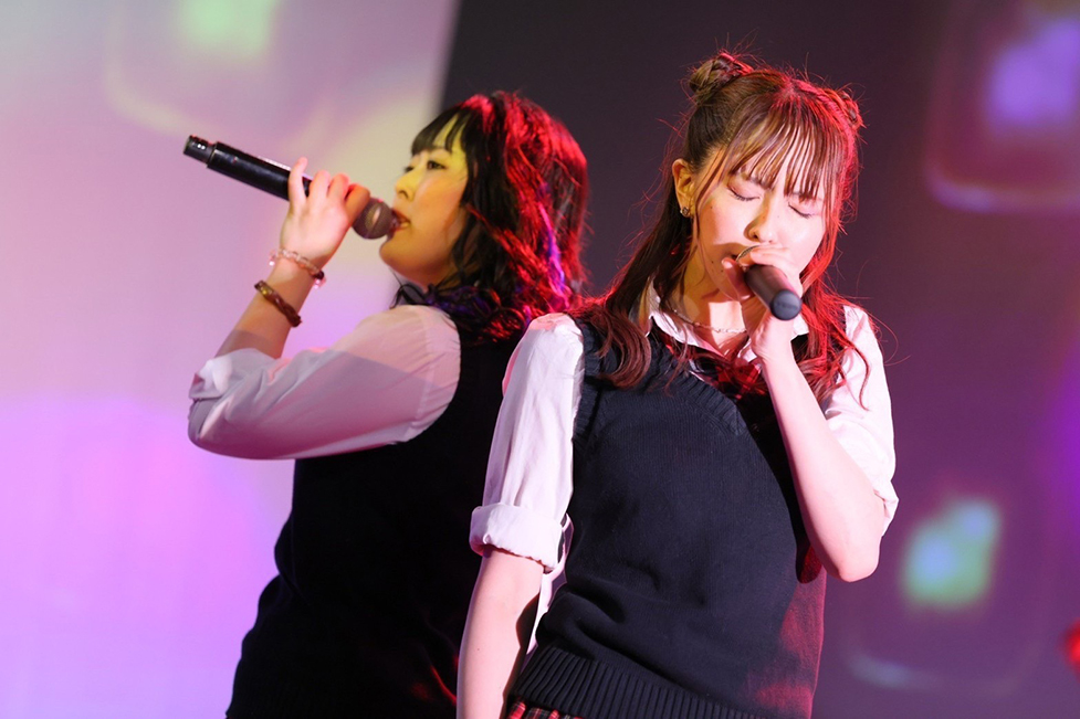 続けて歌うのは切ない歌詞が印象的な「オルゴール」。冬の寒空の下、孤独を味わいながらも、それでも真っ直ぐに相手を思い、思い出を大切にする、健気な女の子の心境を描いた一曲。好きになった人のことを簡単には忘れられない。忘れる必要だってない。一人寂しい思いをしたとしても、約束の歌を歌い続ける登場人物のピュアな心をリアルに描き出して歌で表現ができるのは、彼女たちのなかにも見返りなど関係なく、人を愛することができる純粋な心があるからかもしれない。
