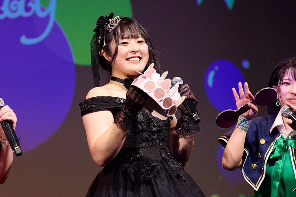 今日の感想を聞かれると蒼音は「今日を迎えるまでに、本当に何回も泣いていて。私が悪いっていうところもあるんですけど(笑)私がとろくて本当に不器用でなんもできなくて、こんなんなのにみんなこの生誕祭のことですごく協力してくれて。はるさんも暑いのにお相撲さん着てくれて(笑)来てくれたみんなもこうやってサイリウム振ってくれて嬉しかったです。うちわもびっくりしたんです!私こんなかわいいうちわ作れないです」とファンがお手製で作った蒼音の応援用うちわを見てコメントした。