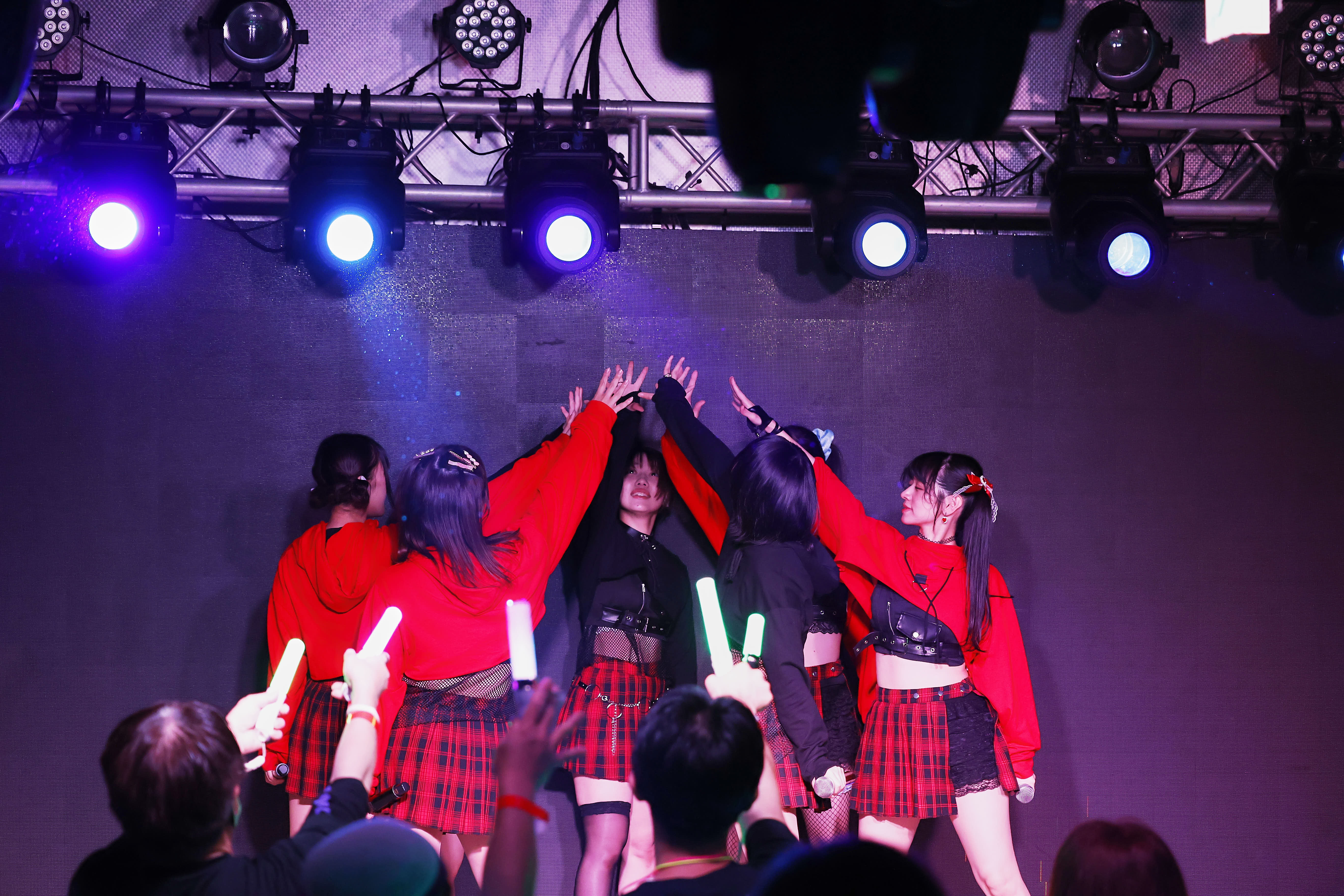メンバーらが扇子を手にしたのに合わせ歌ったのが『梅見月夜』。扇子を用いた艶やかなパフォーマンスは、その動きをずっと追い掛けていたくなるほど華やかだ。艶やかな曲調やパフォーマンスの中に力強さを覚えるのは、メンバーらの気迫の現れ。フロアでも、彼女たちの気持ちを鼓舞するように熱いクラップが起きていた。