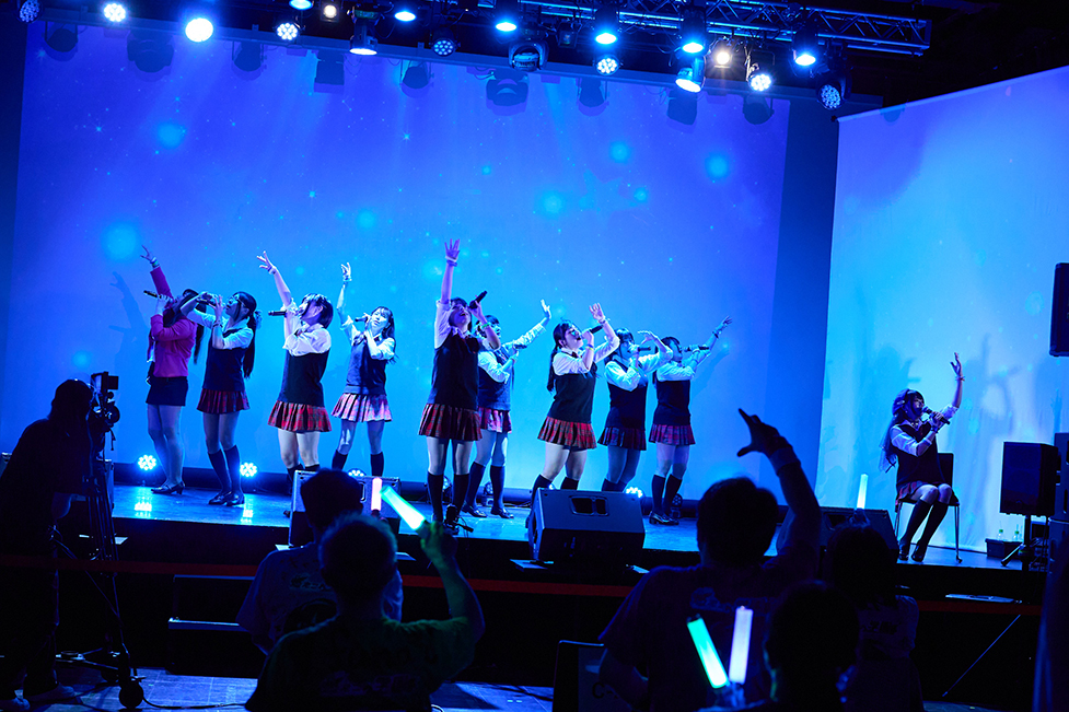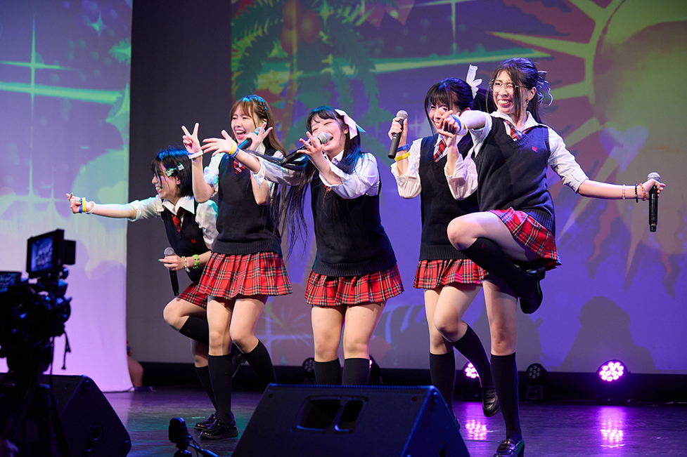 可愛いメンバーたちの笑顔に心撃ち抜かれた直後にやってきたのは「Melodious Revolution」。歌うのは、成田麻穂・當銘菜々・佐々木千咲子・仲川つむぎ・熊野はるの5人。雰囲気をガラリと変えて、迫力あふれるクールな歌声を披露。会場はさらにヒートアップ。会場のファンもペンライト激しく振り乱していた。