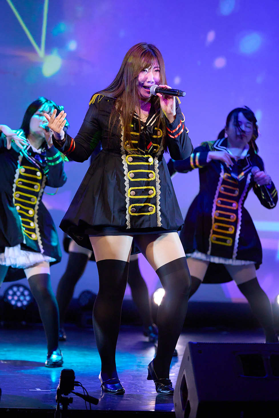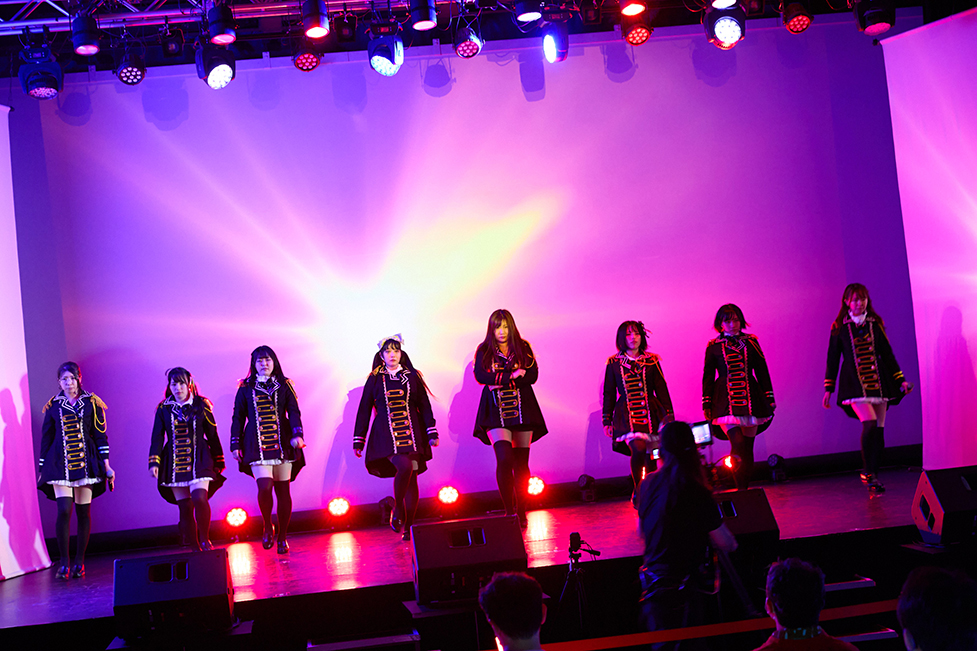 登場したのは新衣装に着替えてきたメンバーたち。鼓笛隊をイメージさせる黒を基調にしたワンピース衣装だ。