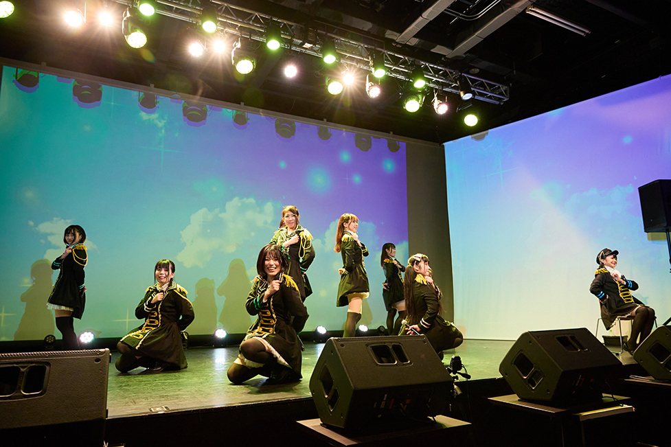 続けて歌うのは「sweet darlin」。大好きな彼を思う一途な女の子の気持ちを表現した楽曲。女の子のちょっとわがままな一面がかわいらしい。「4月度フォトガチャ選抜」で選ばれた成田麻穂・當銘菜々・山田みつき・高未悠加・三浦千鶴が登場し、愛らしい歌声とダンスを披露した。どこか舌ったらずに聞こえる歌声と、きらきらした笑顔にきゅんとする。まるで自分に語りかけてくれているような距離の近さを感じるのは、彼女たちがファンを心から大切に思ってくれているからだろうか。