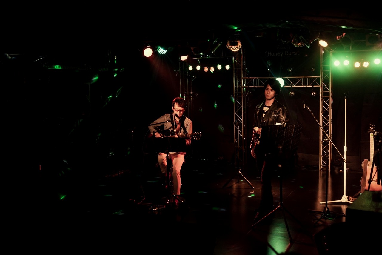 以前にも、山川陽彩の主催イベント「Neo Festival」でコラボレートした『向日葵』を、ふたたびセッション。アコギ1本の演奏を背景にという理由もあり、共に歌声の絵筆で、ライブハウスというカンバスへ鮮やかな絵を描くことを楽しんでいた。それぞれの歌声の色が違うからこそ、ハモったときに生まれたカラフルな声の色彩に心が強く引き寄せられる。互いに気持ちの波長が重なりあうたび、歌声にも深みを増してゆくところも、デュエットだからこそ見れた姿だ。