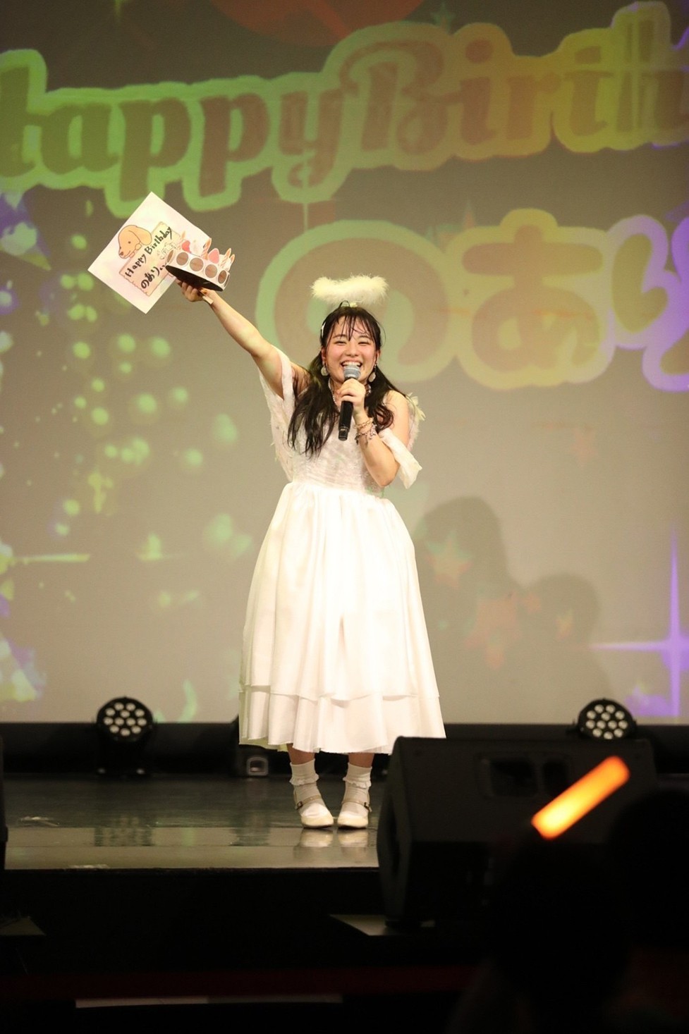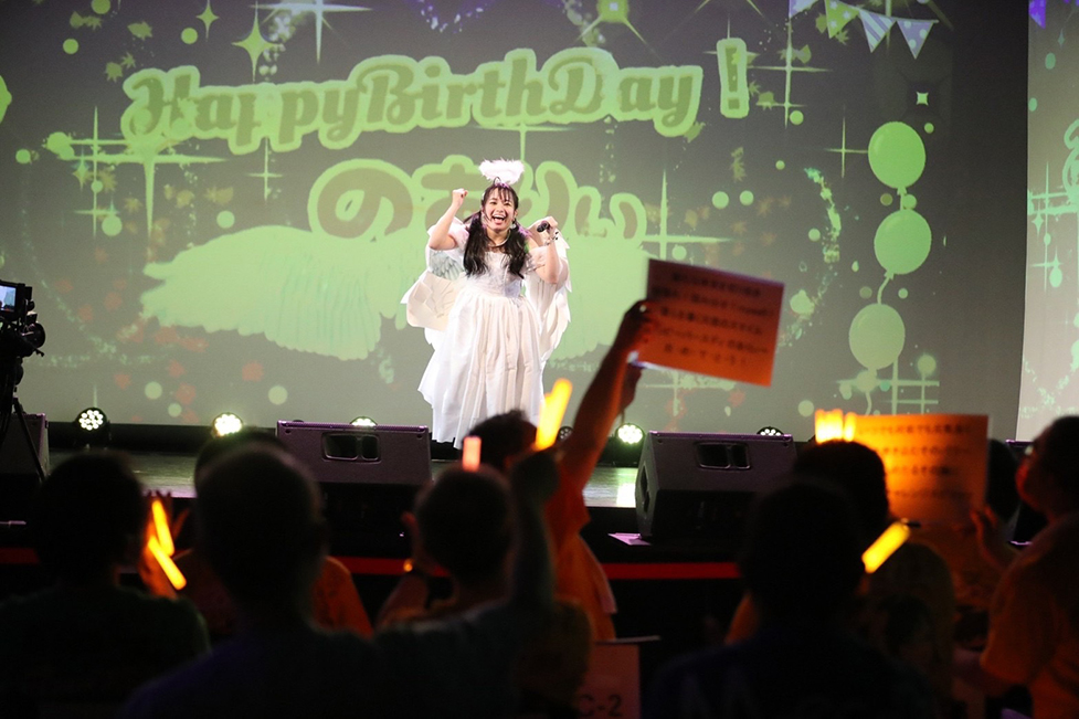 「みなさん今日は稲森のあ生誕祭を見に来てくれてありがとうございます!」とファンに訴えかける。赤らめた頬とキラキラした笑顔がまぶしい。