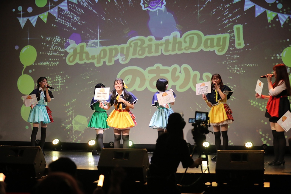 「のありぃちゃ〜ん!お誕生日〜…せ〜のっ!」と成田が声をかけ、「おめでとう!」とメンバー全員が叫んだ。次曲は生誕祭には欠かせない「お誕生日おめでとう」だ。
