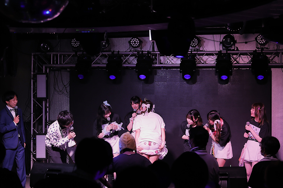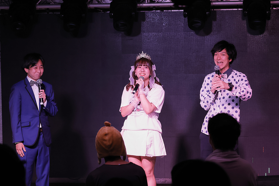 この日はこぐれの2人もMCに参加。自己紹介で担当コンビニ名を加えるところもさすがだ。こぐれの2人が百海咲希に持っているイメージが「おパンツ」。その理由を実際に百海咲希が実践して説明したのだが…あまりにも大胆すぎる「パンツを見せるプレイ」だったので、これ以上深くは触れられません。