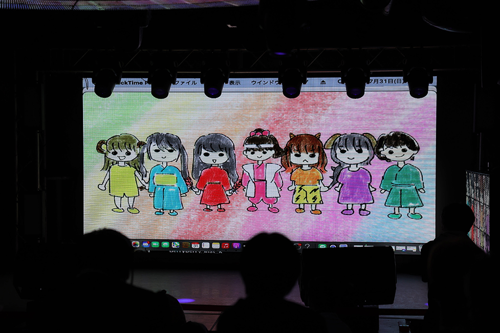 百海咲希の描いた絵を元にメンバーがナレーションや声を入れて作成。「桃太郎」をオマージュしたコミカルな電子紙芝居が映し出された。鬼退治に行く話なのだが、その道中に飛び交う話や登場するキャラクターたちから各メンバーの個性が見えれば、オマージュしたからこそのぶっ飛んだ鬼退治の物語が続いてゆく。この紙芝居を通し、今のコンビニ推進アイドル(仮)の誕生にもまつわる幸せな物語を味わえたのも嬉しかった。