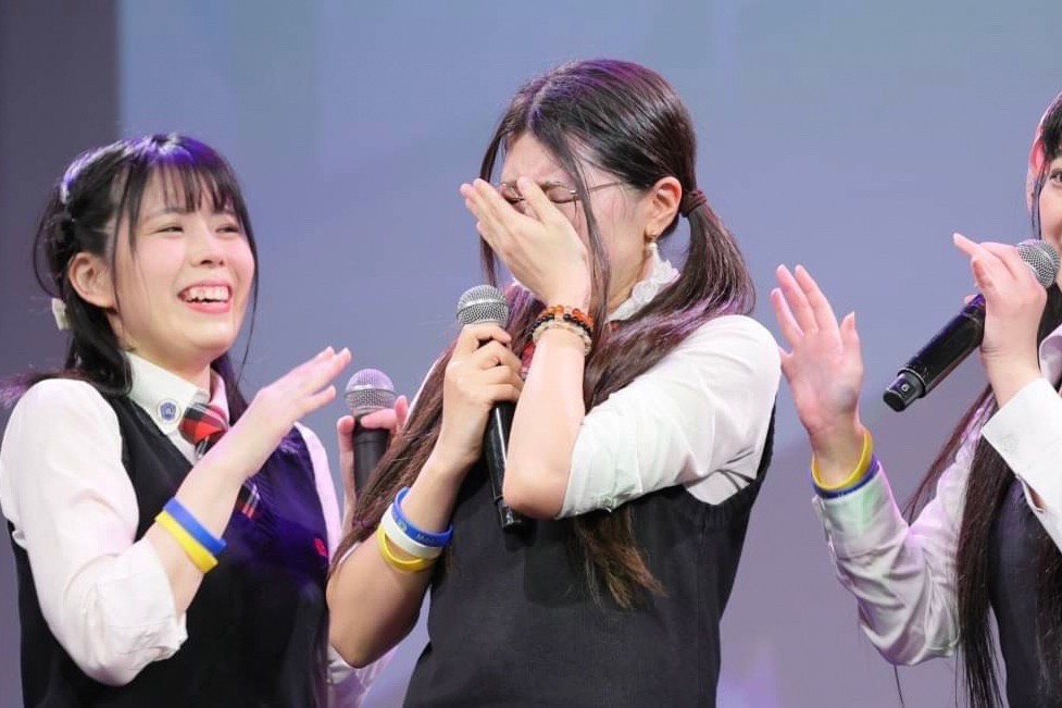 仲川つむぎの凛々しい声が響きだしたとたん、メンバーに向かって熱いコールが飛び交いだした。『again』に強く気持ちを押された広報委員たちが、自分たちの感情のストッパーを外し、思いきり声を張り上げだした。求めていた、メンバーへの熱いエールの飛び交う景色が目の前に描きだされていた。歌い終わったとたん、フロアのあちこちから「Fuuー!!」と熱い声が飛び交った景色も素敵だ。