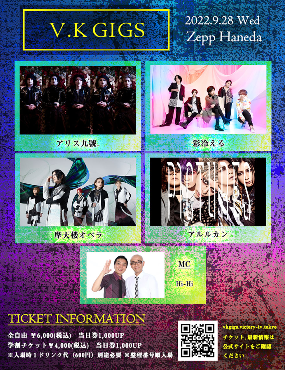 出 演:彩冷える、アリス九號.、摩天楼オペラ、アルルカン  アフタートークMC:Hi-Hi