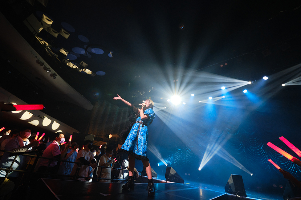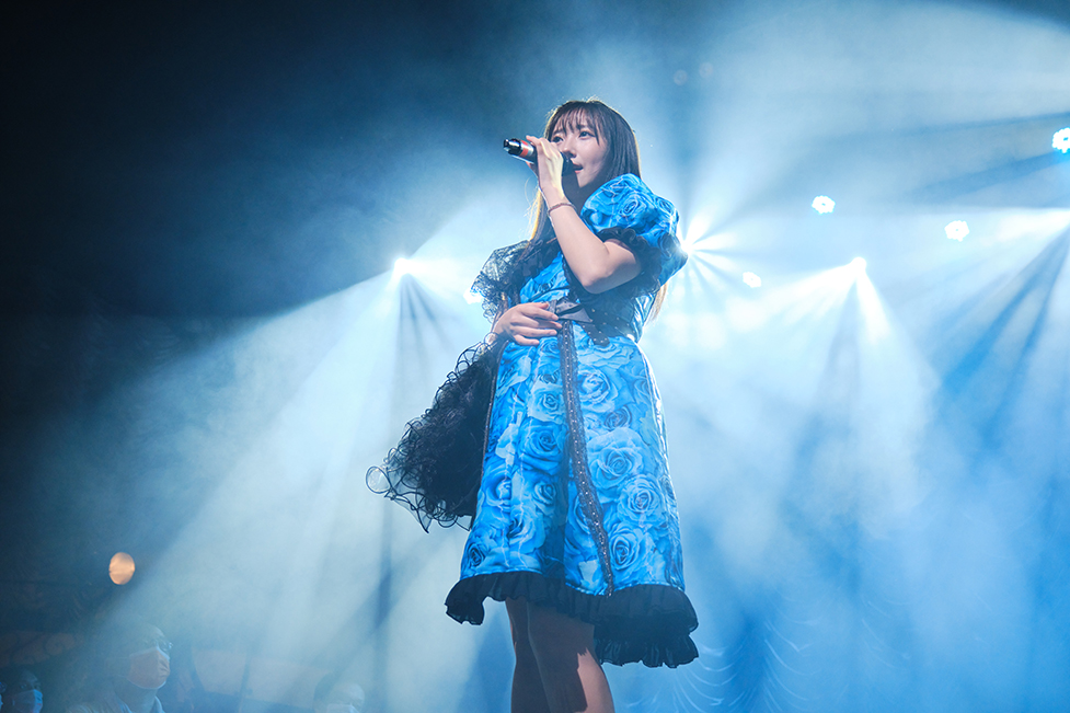 『水色ラフレシア』のイントロが流れるのに合わせ、フロア中から沸き立つ熱い声・声・声。マスク越しとはいえ、メンバーらの歌声を掻き消す勢いで熱情した声が響き渡る。この景色、ようやく出会えたよ。メンバーたちは歌に集中しつつ、笑みを隠せずにいる。彼女たちも、この景色をずっと待っていた。探し求めていた声が、久しぶりに会場中に花咲いていた。